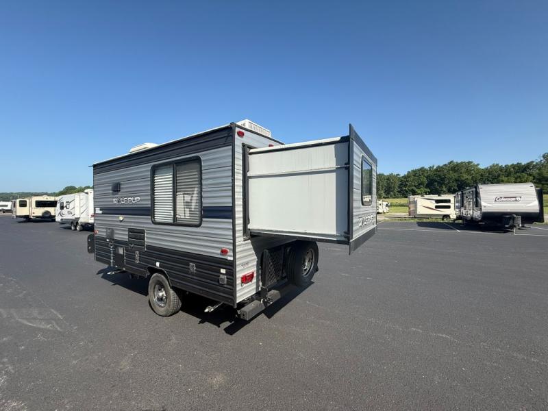 When you choose to camp with a Cherokee Wolf Pup travel trailer, or the toy hauler, you are getting an easily towable lightweight trailer as well as ample room throughout each model. The aerodynamic radius front profile allows for better gas mileage, and the one-piece walkable decked roof allows you to easily clean off the top of your unit after a weekend trip. You'll enjoy features such as an awning with an LED light strip, a high-gloss seamless countertop, and an outside shower with hot and cold water, plus more! With a carbon monoxide detector, safety glass windows, and a smoke detector in each unit, these travel trailers and toy hauler have been constructed with your family's safety in mind. Come select your favorite Wolf Pup model today!