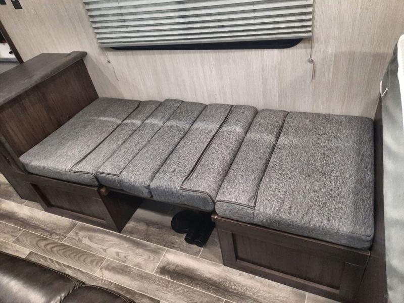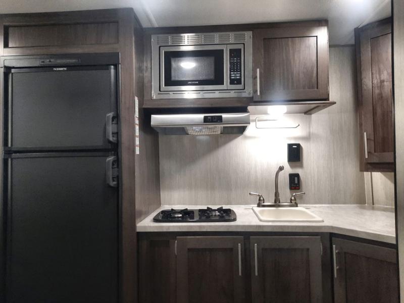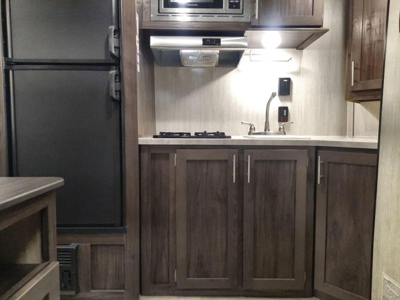 When you choose to camp with a Cherokee Wolf Pup travel trailer, or the toy hauler, you are getting an easily towable lightweight trailer as well as ample room throughout each model. The aerodynamic radius front profile allows for better gas mileage, and the one-piece walkable decked roof allows you to easily clean off the top of your unit after a weekend trip. You'll enjoy features such as an awning with an LED light strip, a high-gloss seamless countertop, and an outside shower with hot and cold water, plus more! With a carbon monoxide detector, safety glass windows, and a smoke detector in each unit, these travel trailers and toy hauler have been constructed with your family's safety in mind. Come select your favorite Wolf Pup model today!