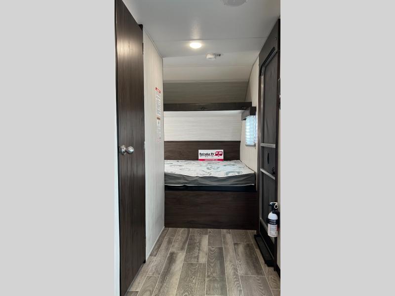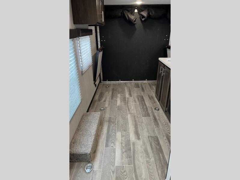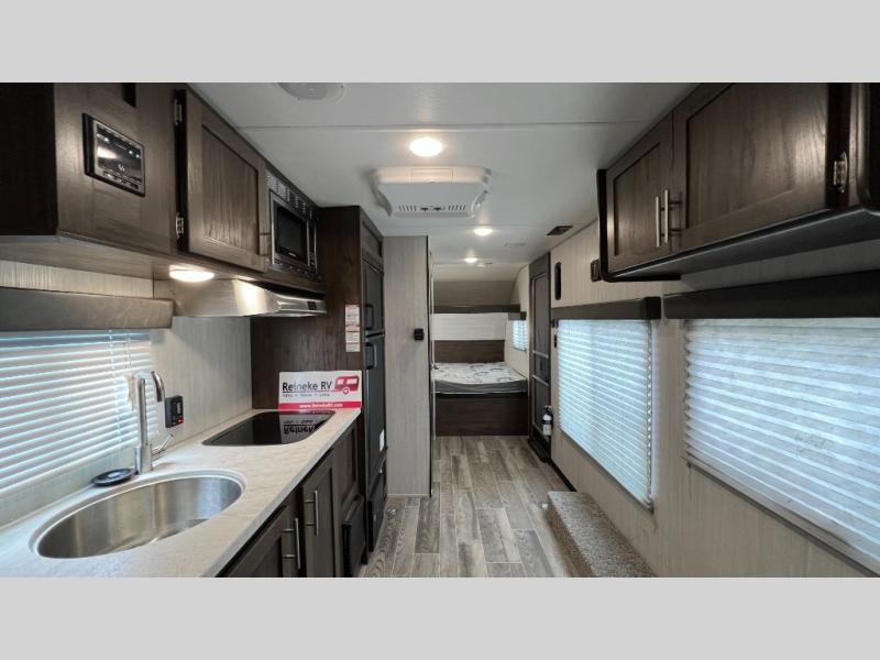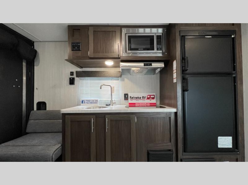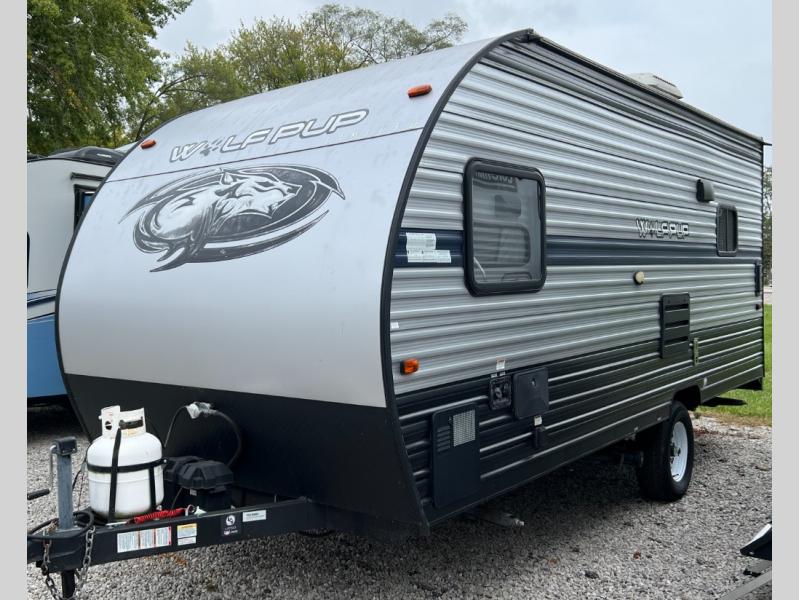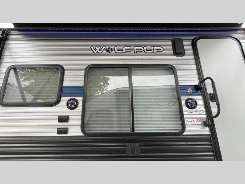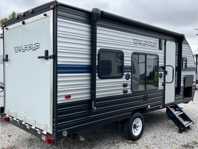 When you choose to camp with a Cherokee Wolf Pup travel trailer, or the toy hauler, you are getting an easily towable lightweight trailer as well as ample room throughout each model. The aerodynamic radius front profile allows for better gas mileage, and the one-piece walkable decked roof allows you to easily clean off the top of your unit after a weekend trip. You'll enjoy features such as an awning with an LED light strip, a high-gloss seamless countertop, and an outside shower with hot and cold water, plus more! With a carbon monoxide detector, safety glass windows, and a smoke detector in each unit, these travel trailers and toy hauler have been constructed with your family's safety in mind. Come select your favorite Wolf Pup model today!