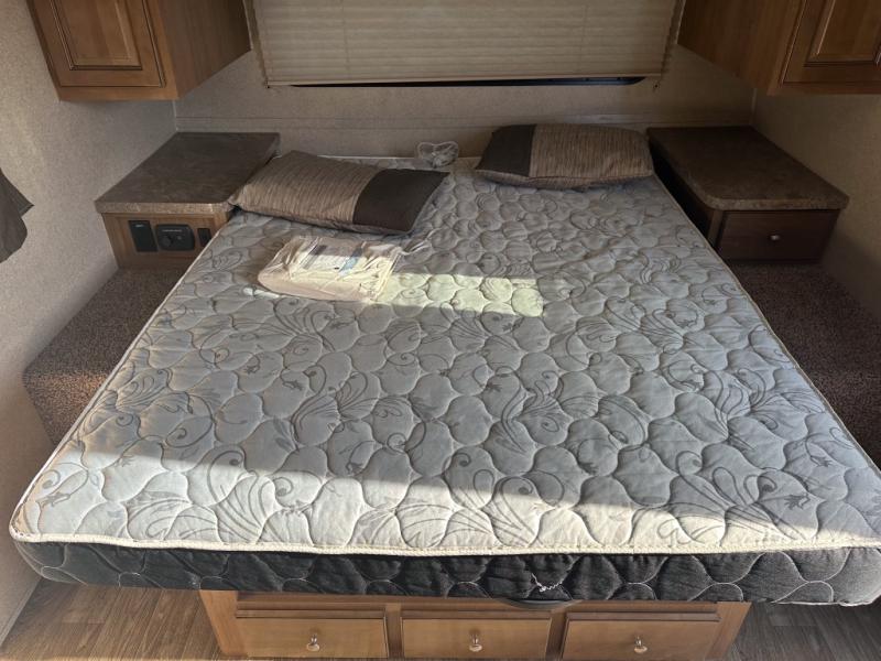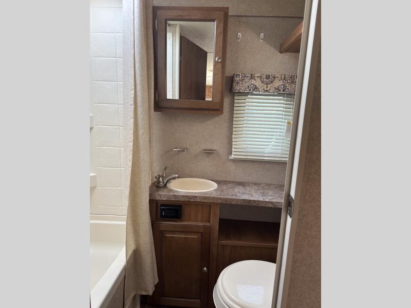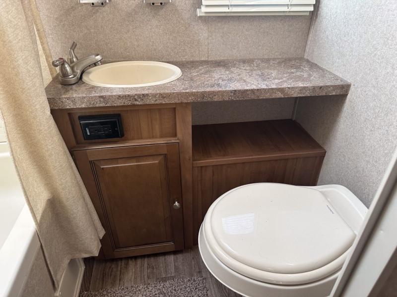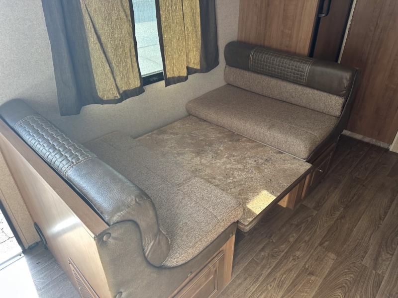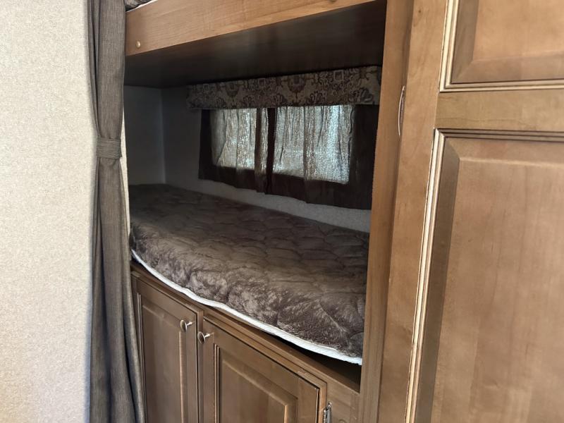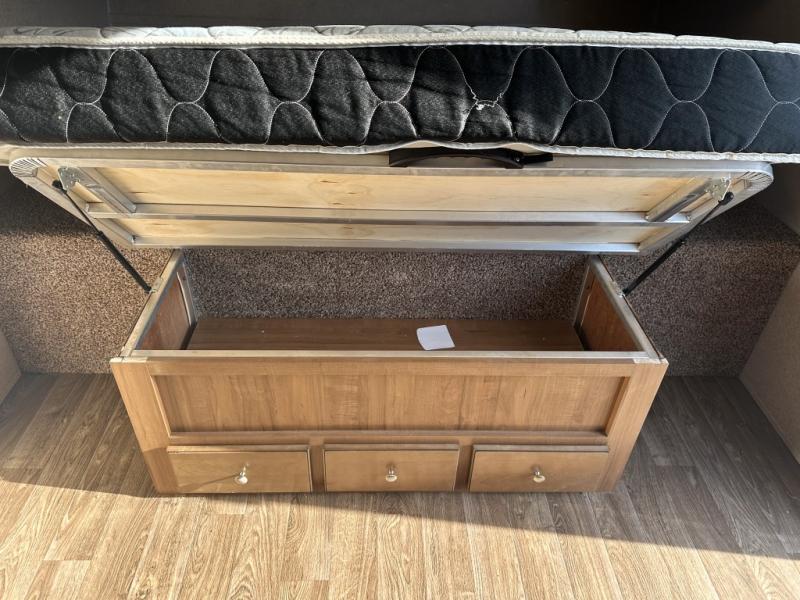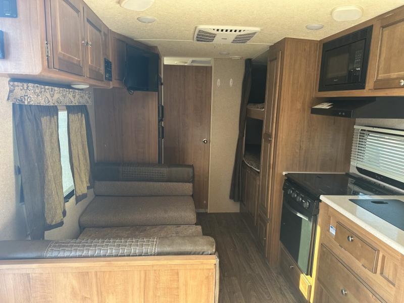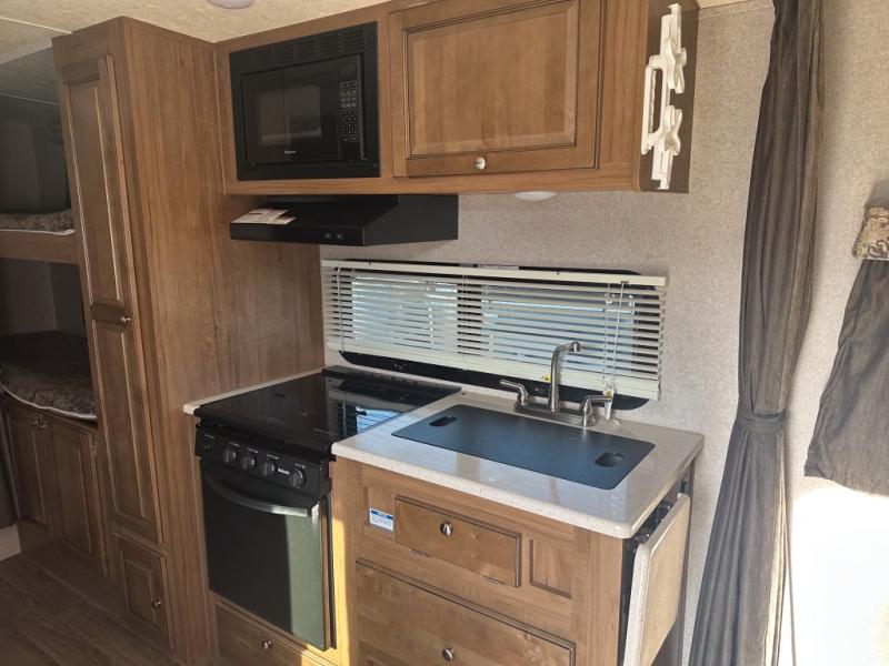 Your family will be ready for any camping excursion with this travel trailer. The kids will love the double bunk beds they can climb into each night, while mom and dad enjoy the Murphy bed at the front of the unit. There is also a dinette that can be converted to a sleeping space for one or two. You'll appreciate the rear corner bath with a tub, making bath time for the little ones as easy as ever. This travel trailer features a counter top extension, which makes prepping dinner a breeze. After you've prepped your food, take it outside to cook on the gas grill and enjoy sitting under the 15' awning with LED lights.