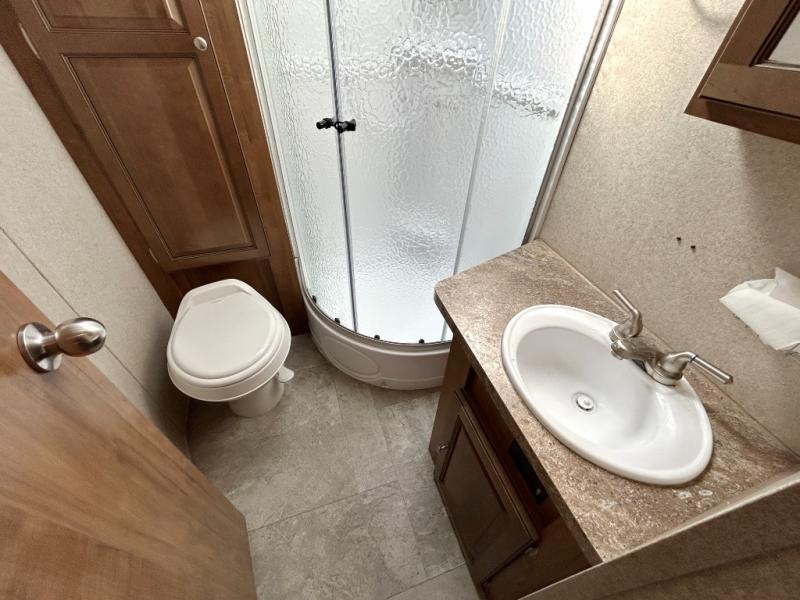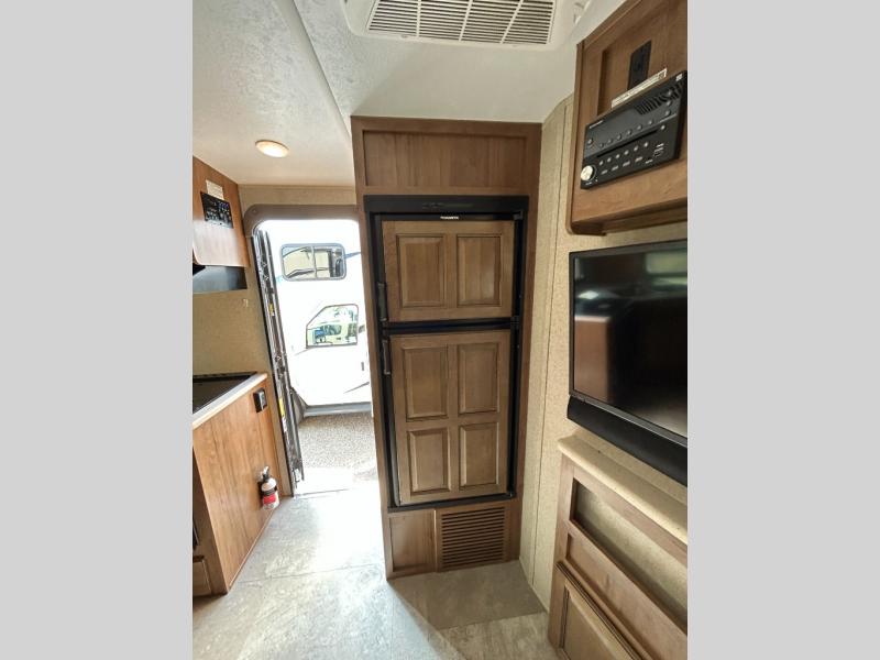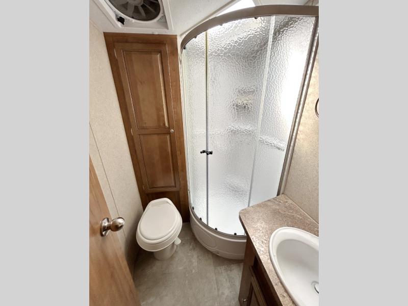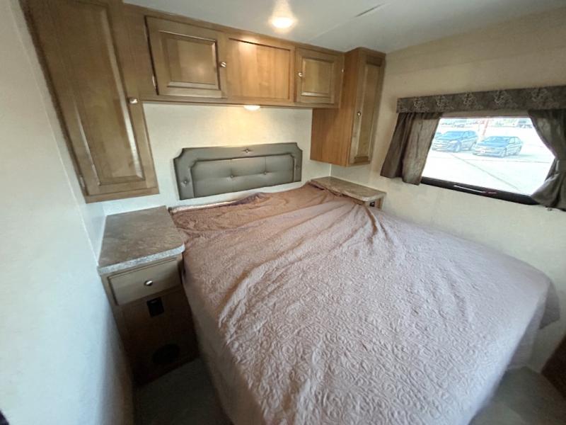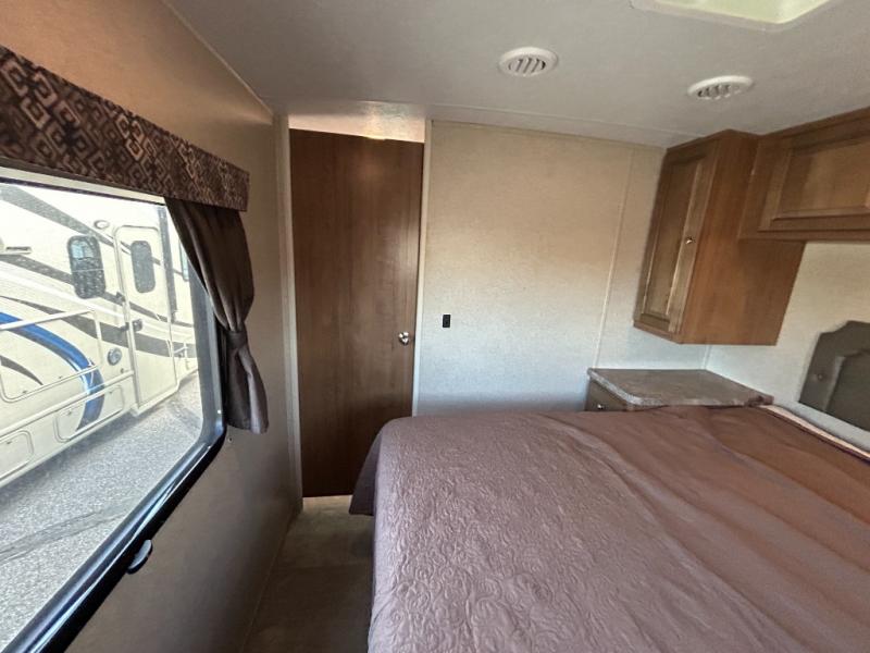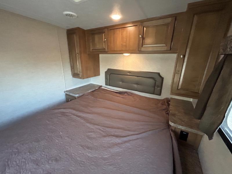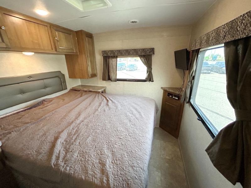 You're going to love this travel trailer with a front kitchen and a rear private bedroom. With sleeping space on the large U-shaped dinette or the queen bed, you can comfortably sleep four in this unit. The single slide out with the U-shaped dinette opens up the living area and provides extra room in the front kitchen area to cook your family dinners. You'll appreciate the pantry, as well as ample counter space to prep your meals. Enjoy your evenings surrounded by the fireplace or the 32" LCD TV makes it a movie night with popcorn and snacks. This model also includes a pull-out grill with a spray port for breakfast outside!