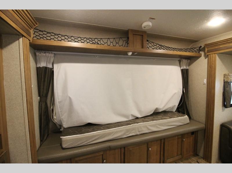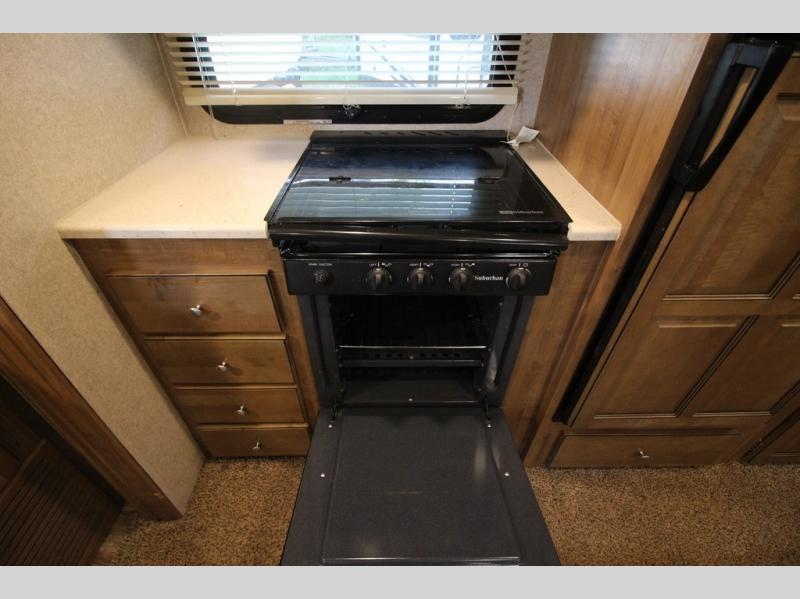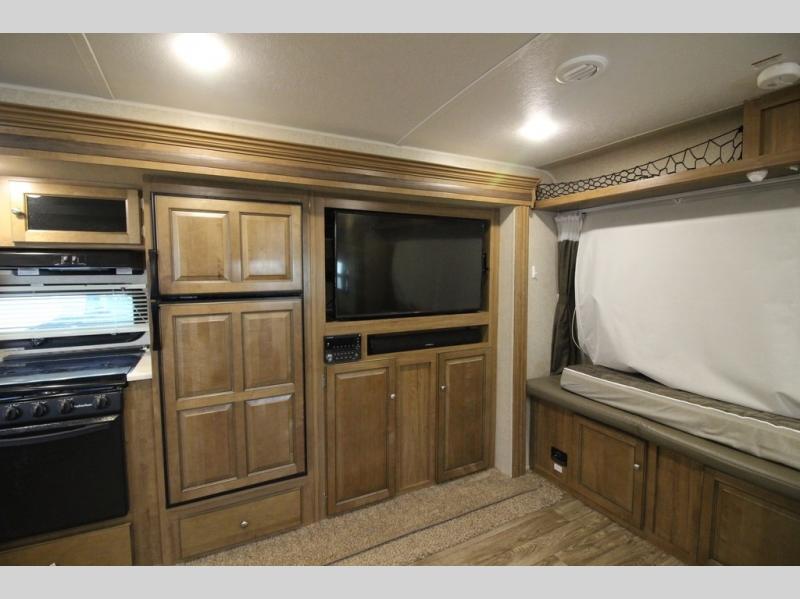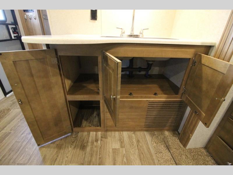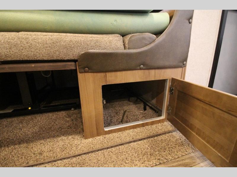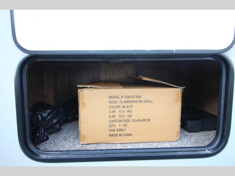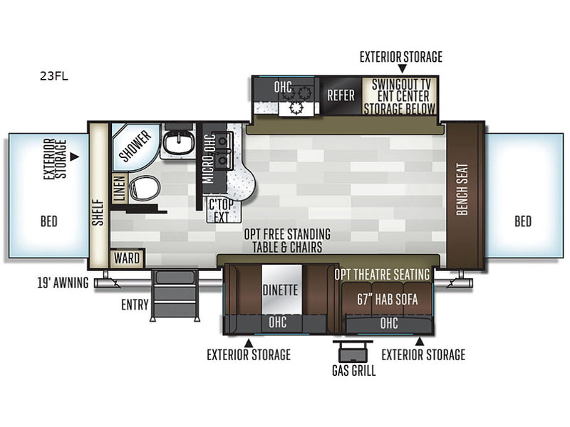 If you seek adventure outside and space to walk around inside your own RV then check out this expandable. The two tent end beds and dual opposing slide outs allow everyone plenty of floor space to move about without squeezing in. You will also find enough sleeping space for seven or eight on the beds, and the furniture if you include the bench seat. You can watch the swing-out 43" TV while cooking, or playing cards at the dinette. There is a counter extension, full bathroom, exterior storage, and even a gas grill option to enjoy!