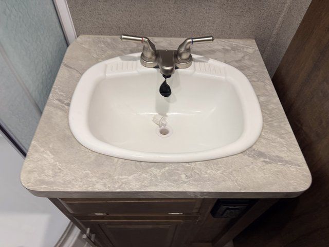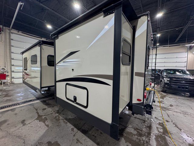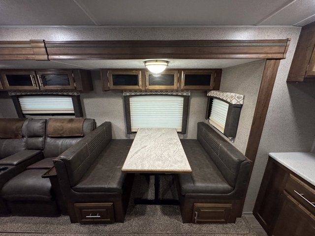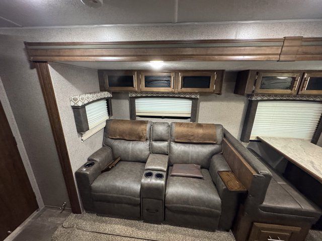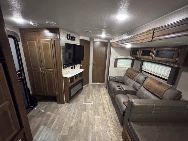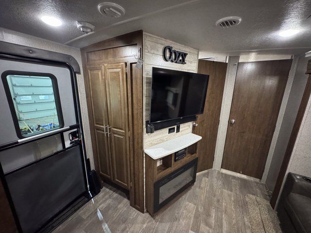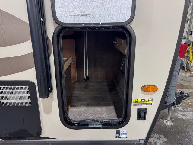 As you step inside this unit you will experience camping like never before! Just imagine a rear private bedroom with a queen Serta bed, nightstands on either side, and plenty of wardrobe space so that you can be dressed for any occasion. The double entry doors make for a smooth flow of traffic in and out of the unit. The best way to wind down your night is by grabbing a drink and lying back on the 67" hide-a-bed sofa in front of the cozy fireplace. If you want to experience the outdoors to its fullest, then get a camp chair and sit back underneath the 21' power awning with an LED light strip!