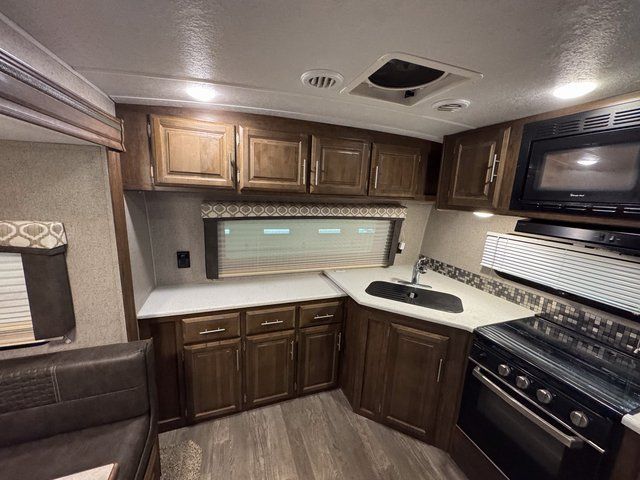 It will be easy to make plenty of memories with your family when you choose to camp with a Flagstaff Super Lite travel trailer by Forest River. These models have beautiful slatewood cabinetry with hardwood cabinet doors and drawer fronts, solid surface kitchen countertops, and ceiling LED 12 volt interior lighting. The 6 sided aluminum cage construction offers lightweight towing, the radius roof with interior vaulted ceilings give you more headroom, the WiFi ranger Wifi booster Sky 4, the enclosed underbelly, and the power awning with adjustable rain dump and LED light strip, will give you years of enjoyment!