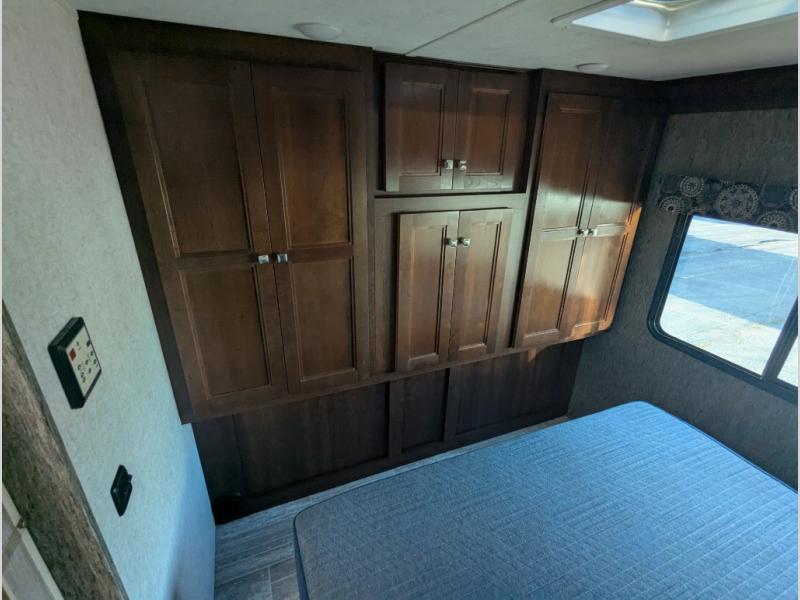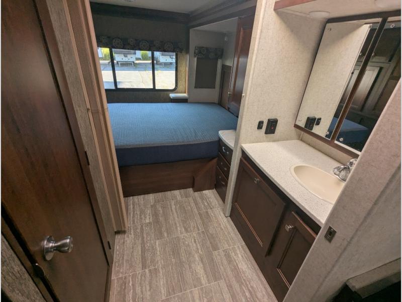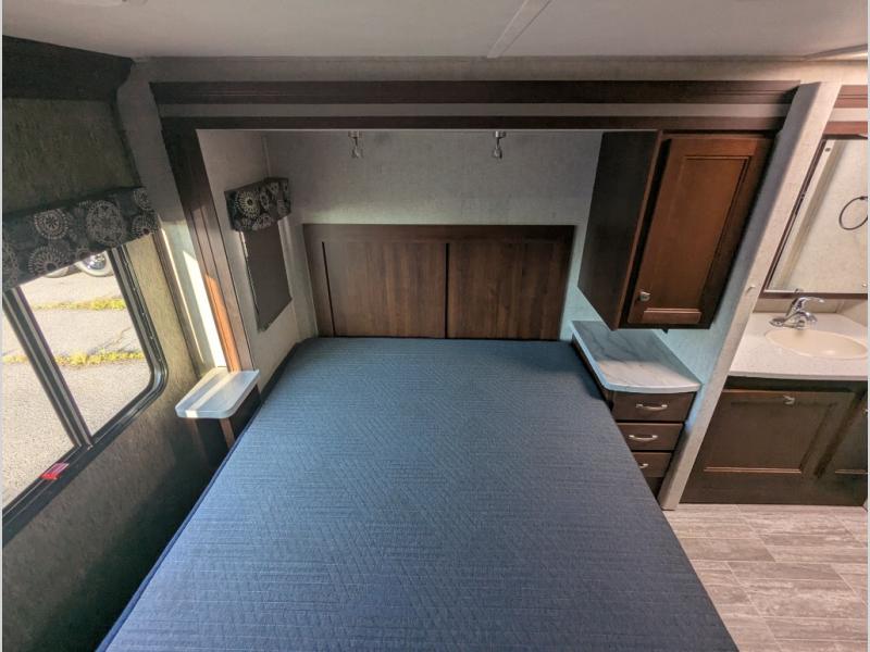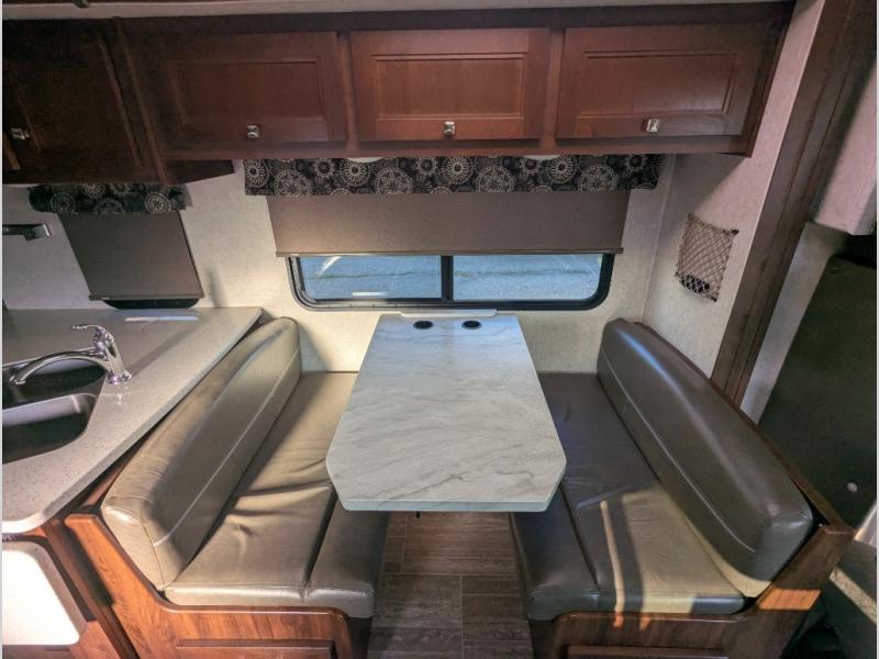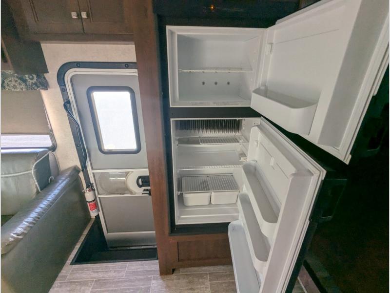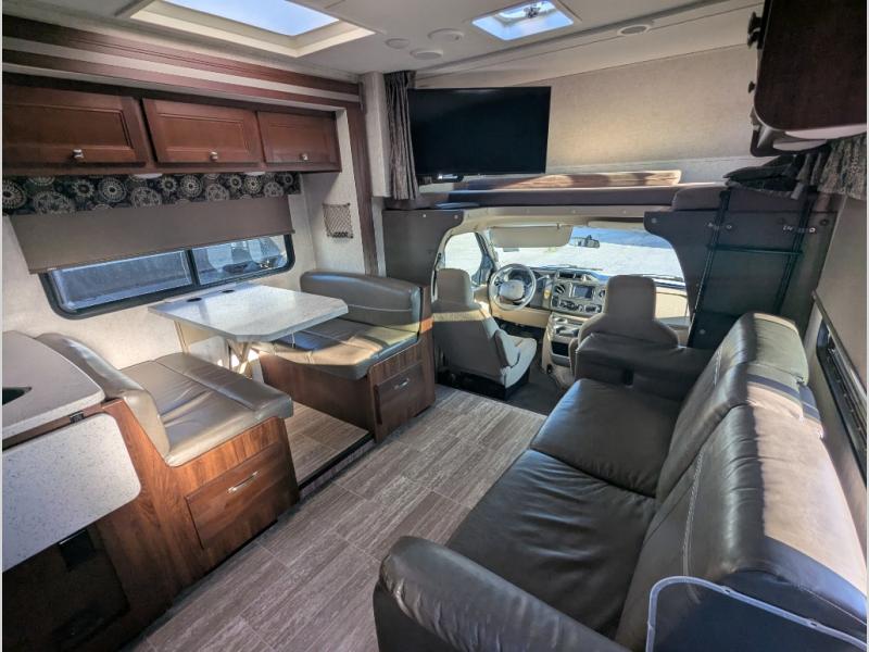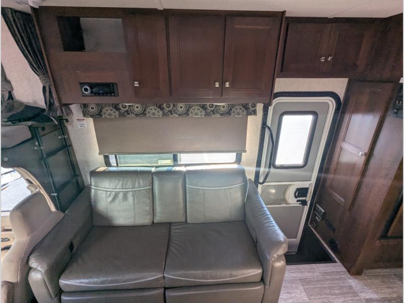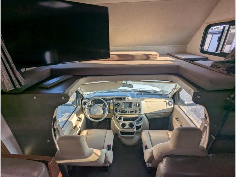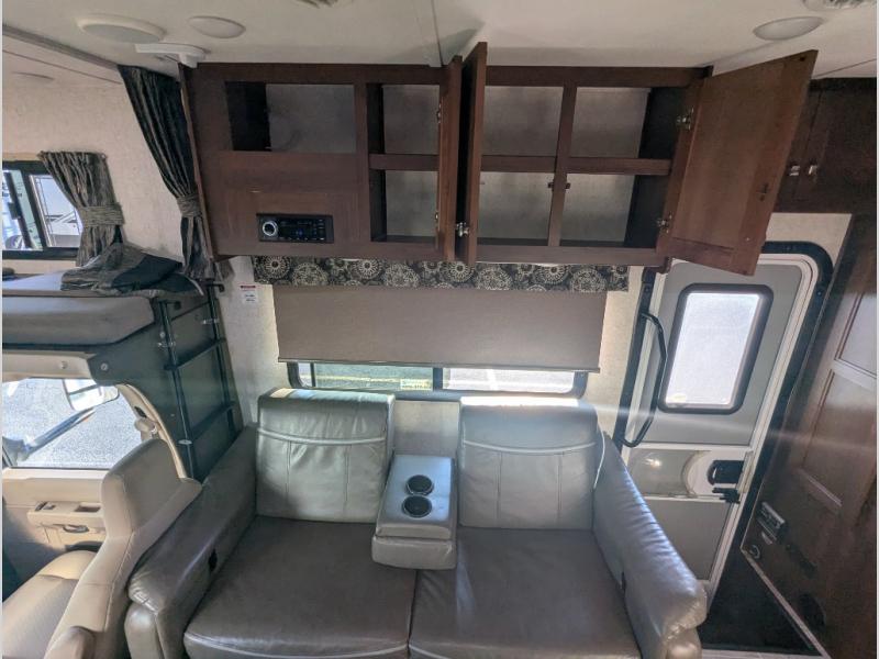 This Ford chassis Forester 3051S features a full wall slide out along the driver's side which gives this unit a bit of walking around space. You have a booth dinette and a sofa opposite one another that both have seatbelts to keep your passengers safe while you travel, and both can fold down into sleeping space at night. There is a split bath that allows you to use both sides at one time. The private rear bedroom has plenty of storage so you can bring whatever you would like to. There is even a place to add an optional TV so you can watch a movie before you go to sleep.
