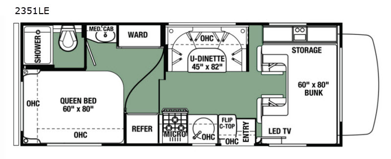Take this Forester LE Class C gas motorhome out to your next tailgate and have the amenities of home with you. When the game is over, just pack up your things, hop in, and head home! If there isn't a game this weekend, head to your favorite camping spot and set up camp. If you are camping this weekend, you will have sleeping space for six, so grab a couple of your friends and enjoy the great outdoors. You have a queen bed in the rear next to the full bathroom and a U-shaped dinette that will fold down into an additional sleeping space for up to two individuals. Plus, there is also a bunk above the cab.