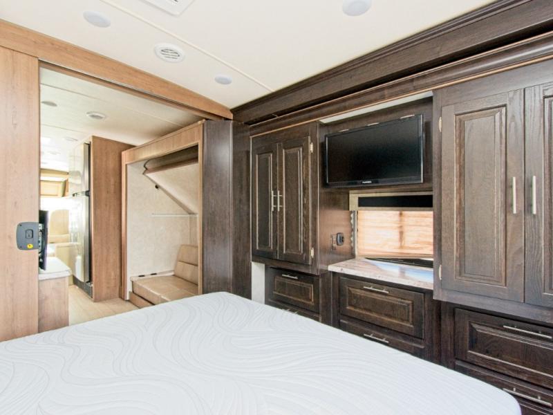Imagine embarking on a cross-country adventure in the Forest River FR3 Crossover Class A gas motorhome. Whether you're soaking in the scenic views of Maine or marveling at the Grand Canyon, this motorhome makes every destination possible. With the ability to sleep up to ten people, everyone will enjoy a restful night. The rear private bedroom features a luxurious king-size bed, perfect for unwinding after a day of exploration. Plus, the spacious wardrobe and 116 cubic feet of exterior storage ensure you have ample room for all your travel essentials.