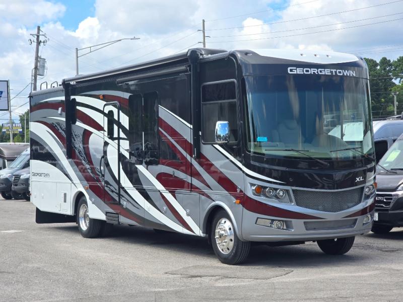 Get ready to set out to new adventures with a Georgetown XL Class A gas motorhome by Forest River that has been built upon a Ford F-53 chassis. You won't be lacking for storage space with the Rotocast one-piece storage compartments and all of the interior overhead cabinets. In the evening, plan to sit and visit with your family and friends underneath the electric awning, and the LED light strip allows you to visit even after the sun has set. Inside there is a Pioneer dash entertainment system with AM/FM/DVD/Bluetooth/USB and 90 sheen high-gloss solid wood Amish cabinetry. When you choose to camp and travel with a Georgetown XL, you won't be disappointed!