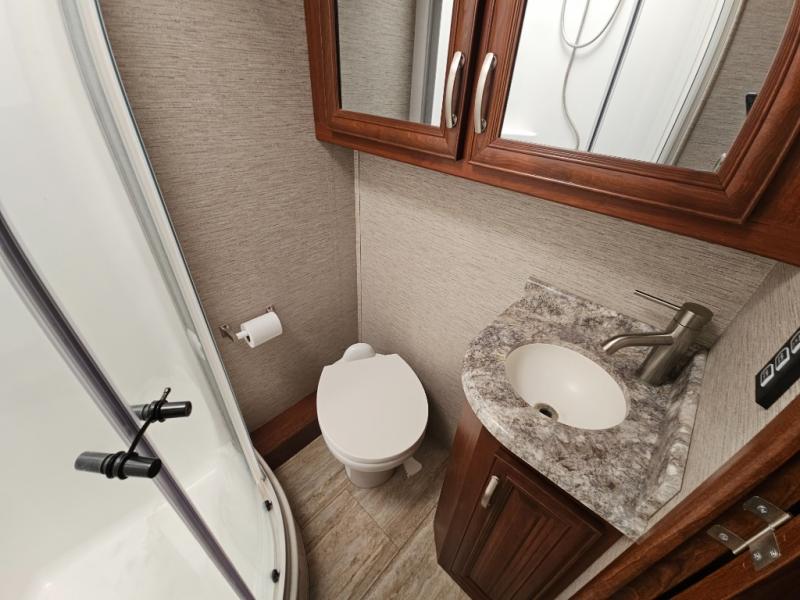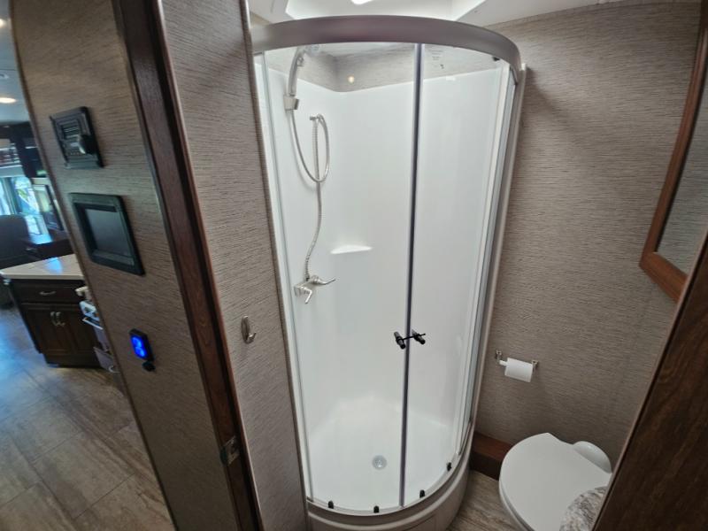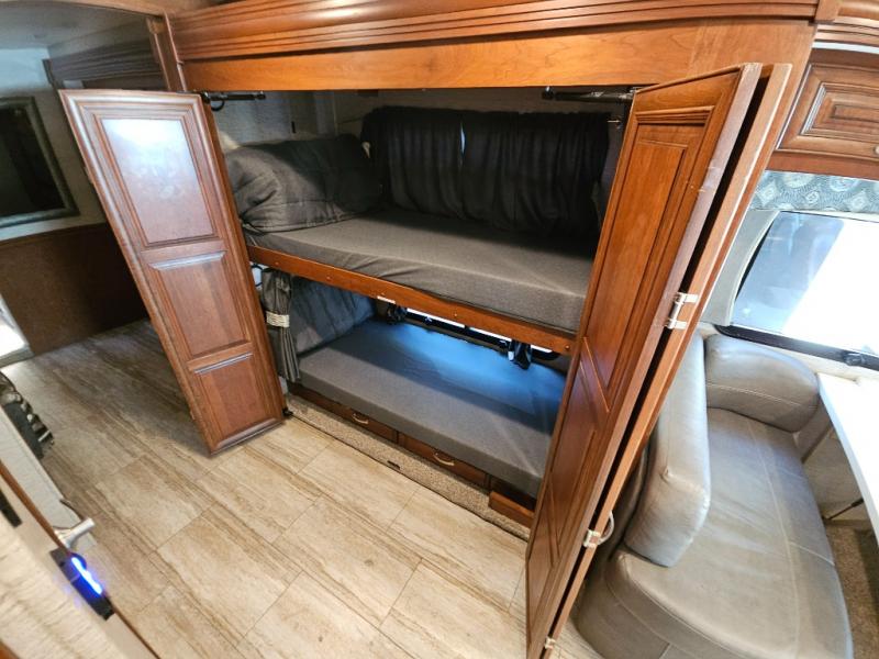 Start traveling to new destinations in comfort and style in this Legacy SR 340 38C class A motor home. This model by Forest River features plenty of comforts and space. From the full wall slide and two full bathrooms, to the overhead cabinets and comfortable furniture, you will love all of the conveniences in this model. Your kiddos are sure to enjoy the set of bunk beds that also have two 20" LED TV's. You will be able to keep your group happy and full the entire trip with all of the space inside the residential refrigerator and the pantry. Enjoy the outdoors to it's fullest by grabbing a chair and your favorite beverage and relax underneath the 18' power awning with LED lights.