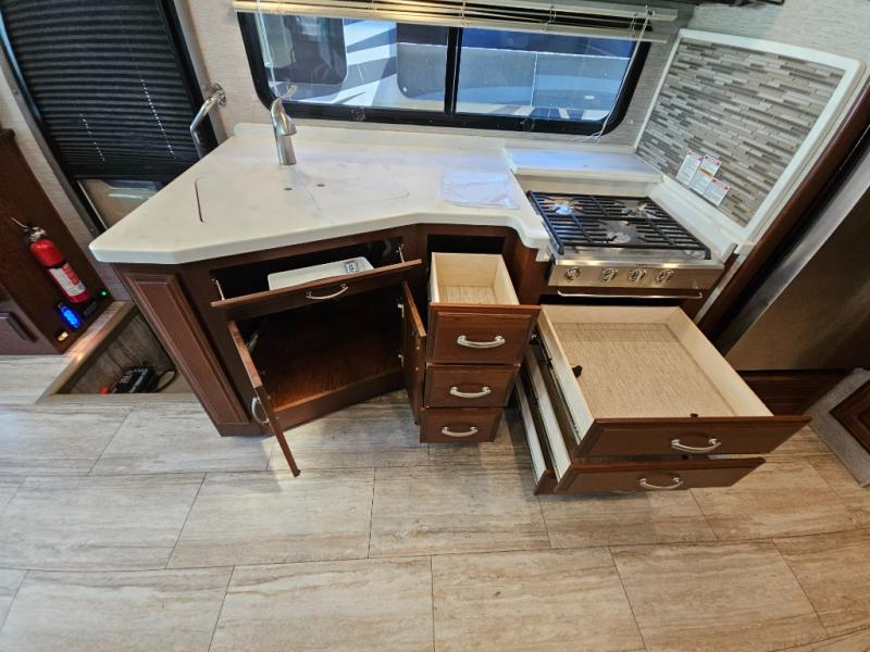 The Forest River Legacy SR 340 class A diesel delivers everything you could want in a motorhome. You've worked hard and with any of these motorhomes you will find the luxury that you've earned! These units are built with a Freightliner XCS straight rail chassis, a 6-speed 2500 Allison transmission, and rust resistant aluminized chassis skirts to give you a motorhome that will last a lifetime. You will enjoy the convenience of multiple USB charging ports in the cockpit, as well as a cockpit table with cupholders between the driver and passenger seats. The driver and passenger seats also swivel and recline so when you're parked you can turn them around and join the conversation in the living area. In the evening you can relax under the carefree, armless latitude awning with wind sensors, and you can even watch your favorite movie on the exterior 32" LED TV, plus play your best music with the JBL soundbar with integrated sub and Bluetooth. So, come pick out your favorite Forest River Legacy motorhome and get your relaxing vacation started already!