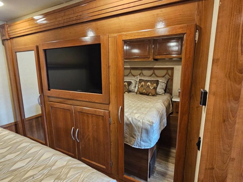 Walk-around queen bed in the private rear bedroom for a restful retreat