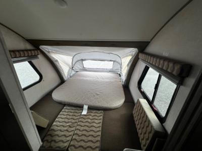 For a sturdy one-of-a-kind travel trailer, choose the R-Pod by Forest River. Along the exterior you will find a powder coated steel frame, custom tinted safety glass windows, and convenient magnet baggage door catches. Inside each model you will enjoy Designer Carefree flooring, hardwood drawer fronts with full extension ball bearing drawer glides, plus decorative window treatments to give you an at-home feel. Only the West coast models feature the Hood River Edition, which includes, advanced ground clearance, X-Treme 15" off road tires, aluminum rims and MaxxAir vent cover. These trailers are ready to go when you are! Come select your R-Pod today!