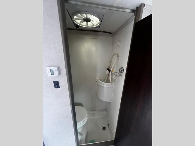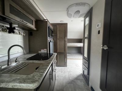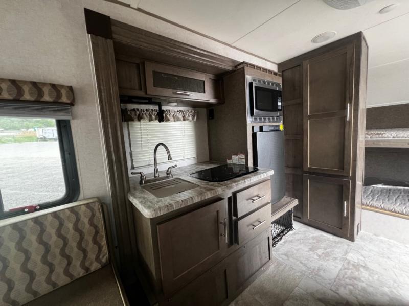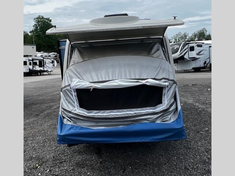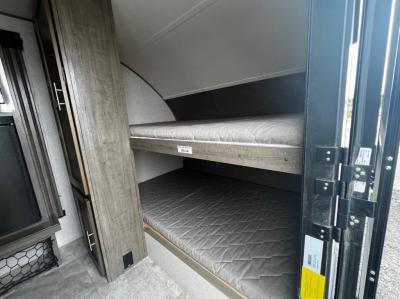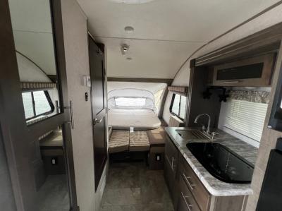 Whether you are headed out to a nearby campground or on a more extravagant excursion, this R-Pod travel trailer is ideal for you! After you set up camp, then come enjoy the spacious interior. This unit has a refrigerator and a two burner cooktop to make a family meal. Sleeping space can be found on the bunk beds plus the u-dinette converts into additional sleeping space, if needed. With an entertainment center in this model, bring along a TV for movie nights! This travel trailer also has a pass through storage for any large items you want to bring along!