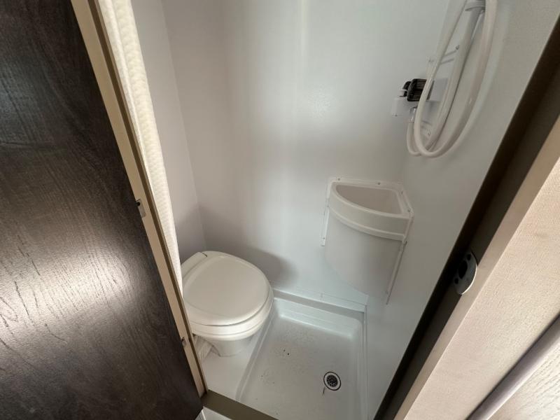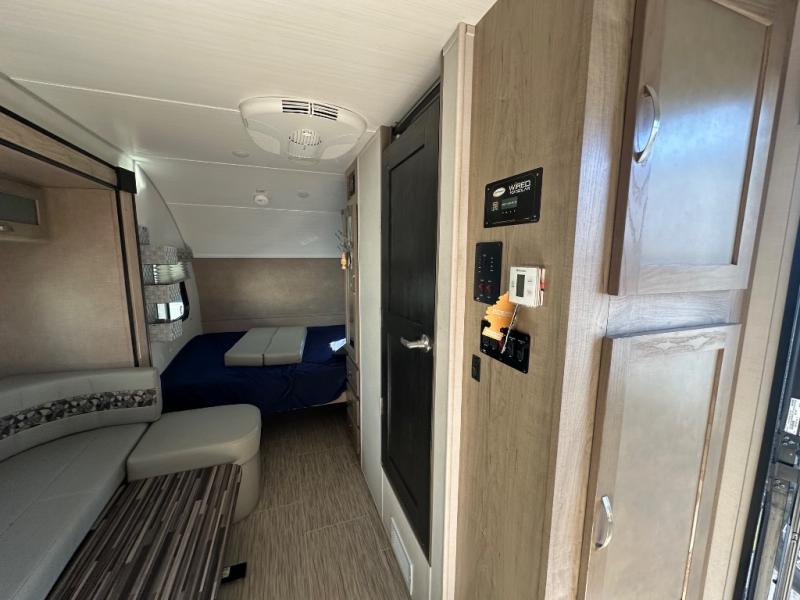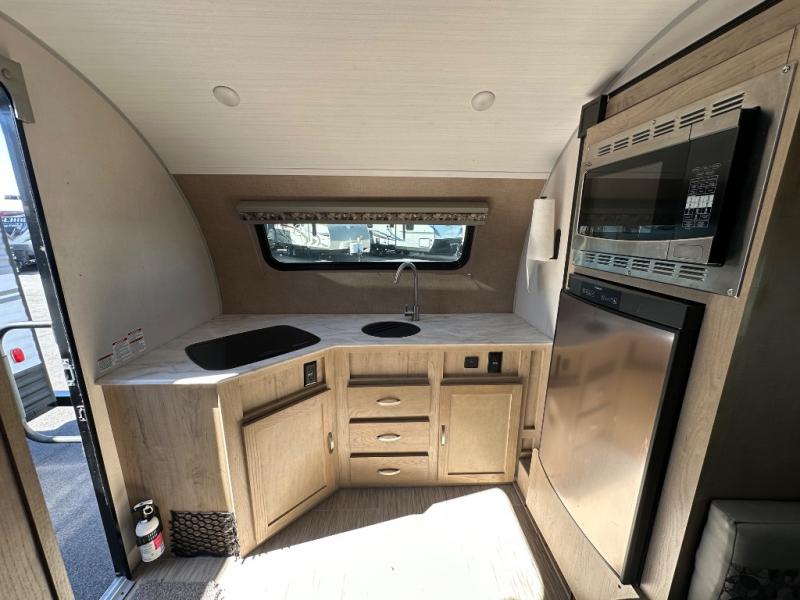 Whether your camping trips take you near or far you will want this single slide out R-Pod travel trailer. The unique rear kitchen features extra counter space as well as a two burner range where you can whip up a snack or your meals. Enjoy family time at the U-dinette and at night you will be impressed with how easily it is to convert this area into a sleeping spot for the kids. This unit also includes a queen bed, a pantry, and a wardrobe for all your valuables. With a wet bath in this model, washing up after a long day is a snap. Come check out this R-Pod travel trailer today!