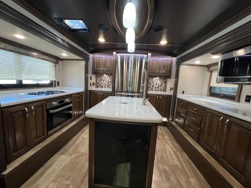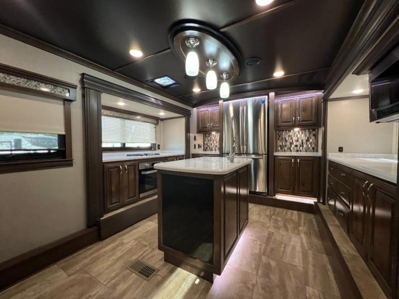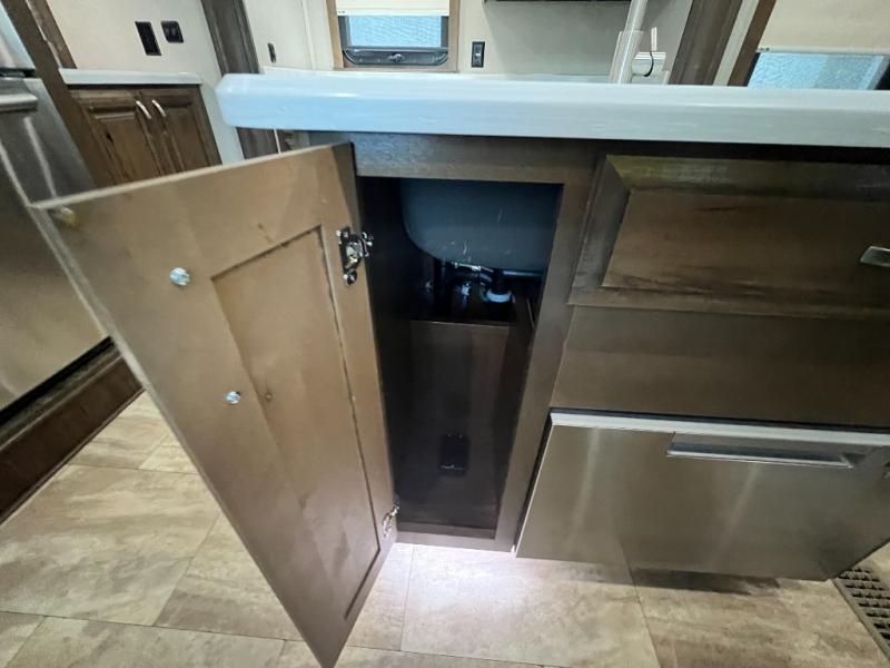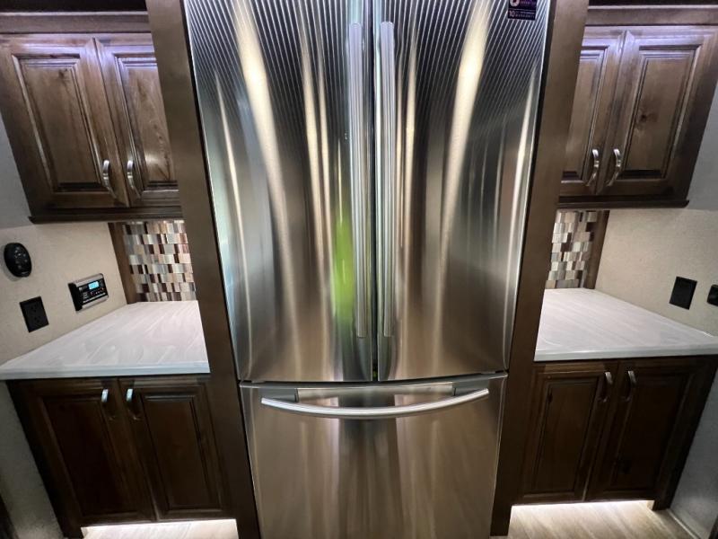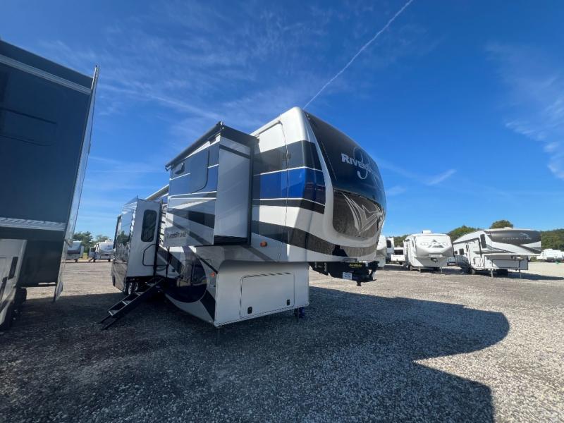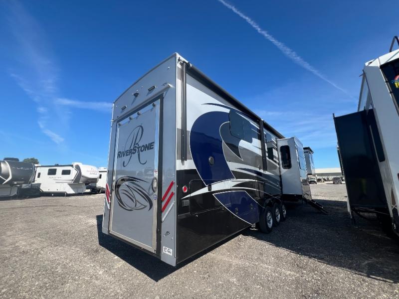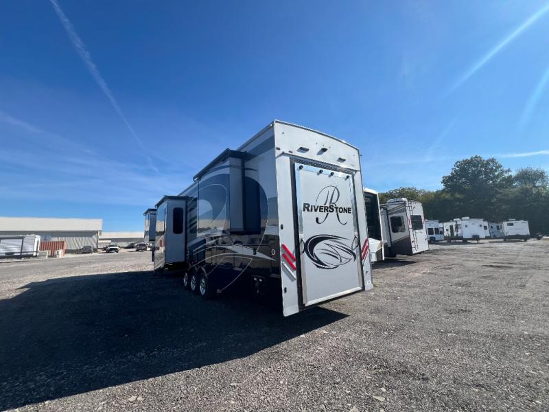 Get ready to camp in luxury when you choose a RiverStone toy hauler fifth wheel! These models feature residential style insulation as well as roof and flooring touts with an R-38 insulation value which is designed for full time living throughout the country! Inside each model there is a 60" LED Smart TV as well as plenty of residential touches from the Shaw vinyl flooring to the large stainless steel kitchen sinks. There is beautiful upgraded Corian solid surface counter tops in the kitchen and a central vacuum system which makes cleaning up so much easier. The mandatory RiverStone Luxury Package has features such as a Splendid "Astral" stackable washer and dryer, a large infinity light over the kitchen island, plus a Fischer Paykal dishwasher. Come see for yourself why the RiverStone is desired by many for the luxury and convenience it offers.
