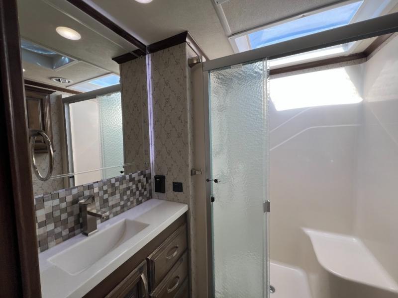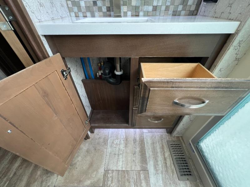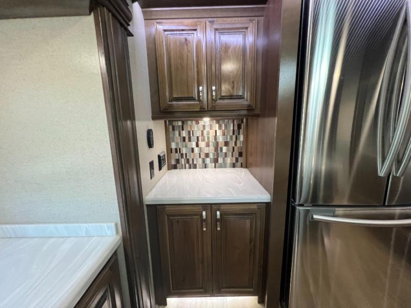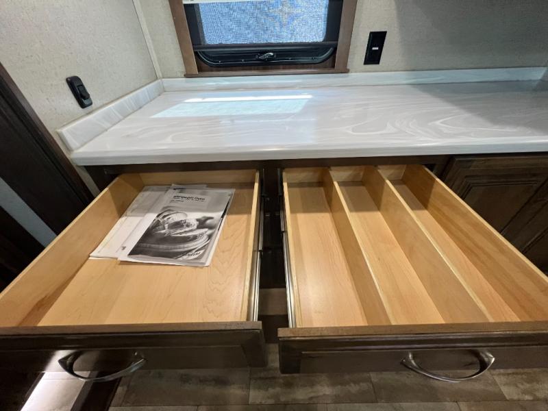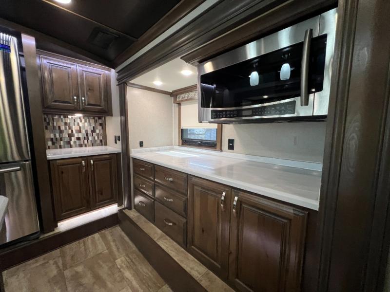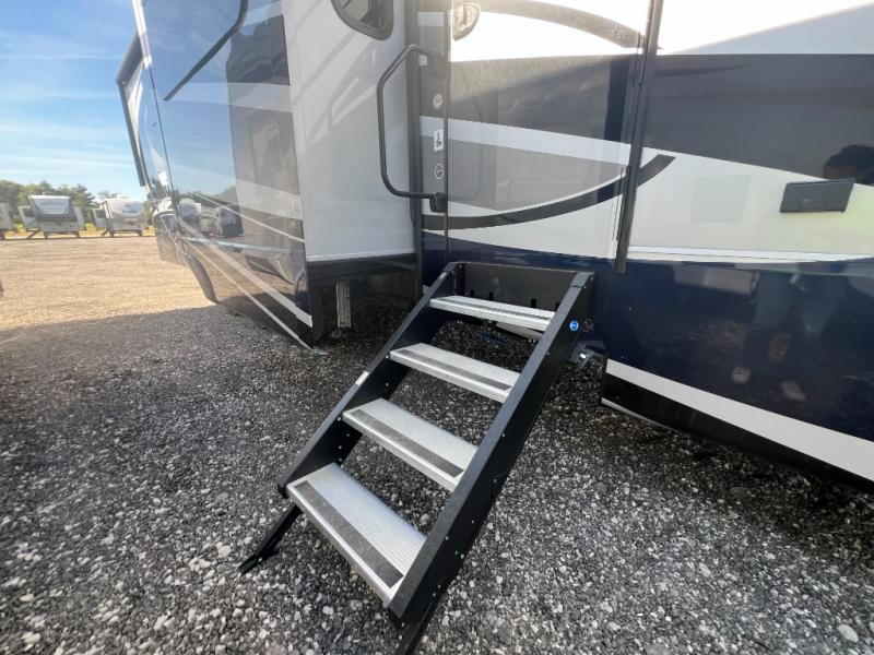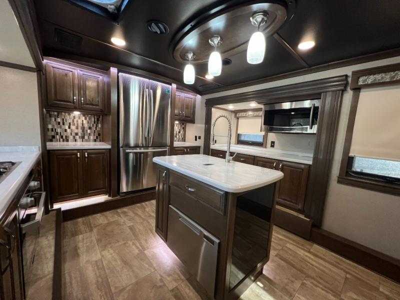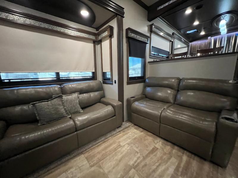 Get ready to camp in luxury when you choose a RiverStone toy hauler fifth wheel! These models feature residential style insulation as well as roof and flooring touts with an R-38 insulation value which is designed for full time living throughout the country! Inside each model there is a 60" LED Smart TV as well as plenty of residential touches from the Shaw vinyl flooring to the large stainless steel kitchen sinks. There is beautiful upgraded Corian solid surface counter tops in the kitchen and a central vacuum system which makes cleaning up so much easier. The mandatory RiverStone Luxury Package has features such as a Splendid "Astral" stackable washer and dryer, a large infinity light over the kitchen island, plus a Fischer Paykal dishwasher. Come see for yourself why the RiverStone is desired by many for the luxury and convenience it offers.
