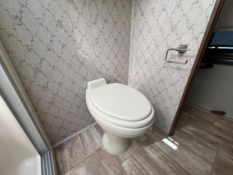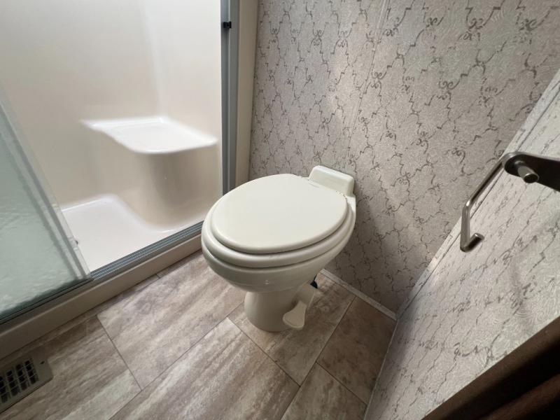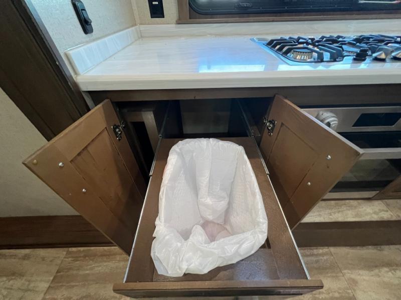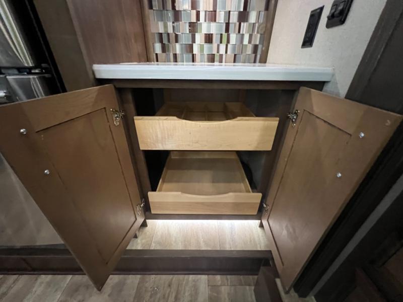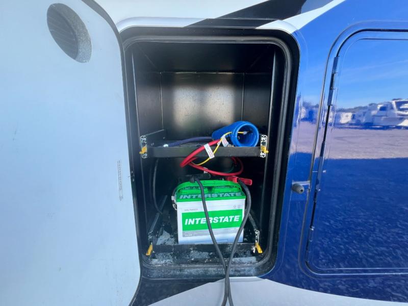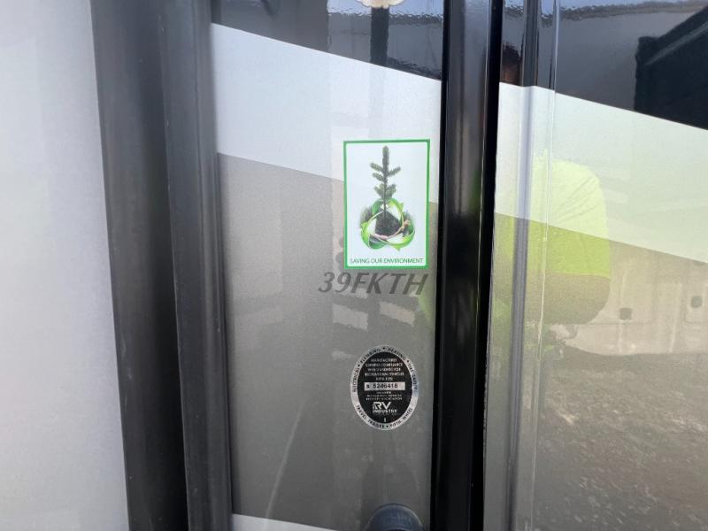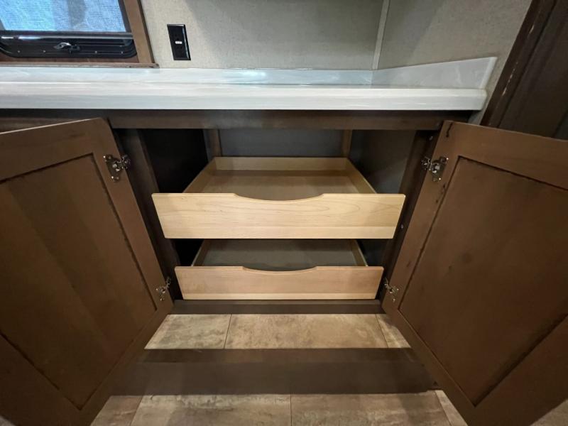 This RiverStone 39FKTH toy hauler fifth wheel gives you all of the at-home comforts plus the convenience of bringing along a few dirt bikes or a four wheeler. Whether you are traveling near or far you can easily load an unload your big toys with the zero gravity ramp door. After you are done playing outside for the day then come relax in the living area where you will find two hide-a-bed sofas and a set of theater seats. You can warm up at the fireplace or enjoy watching a movie or show at the 60" LED Smart TV with a premium soundbar and DVD player/stereo. In the front kitchen you will find plenty of counter space for meal prep as well as an island with a double sink and a dishwasher for cleanup to be a breeze!