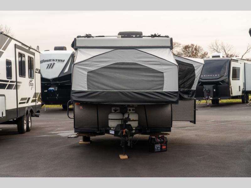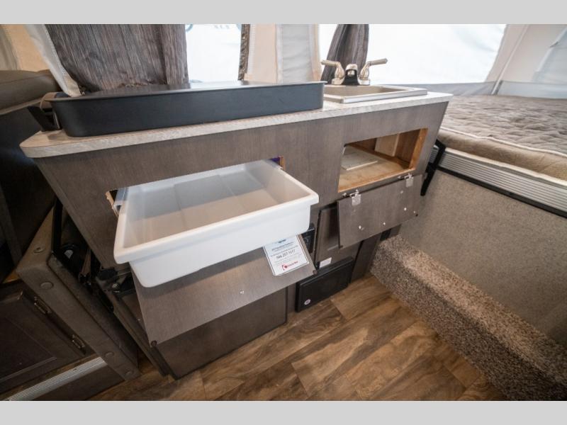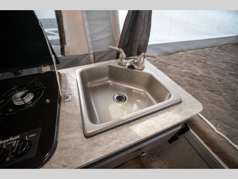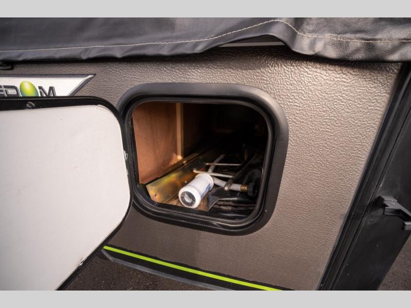 If you enjoy camping in the great outdoors with friends or family then this Forest River Rockwood Freedom 2318G pop-up camper is just for you! It features a swing galley that allows you to set your sink on either the floor while traveling while the camper is down or on top of the sink base while in use. The gaucho sofa provides a seating area during the day and a sleeping area at night. You can store all of your camping needs with plenty of room inside the exterior storage. You can enjoy the outdoors even while you cook meals with the outdoor gas grill.