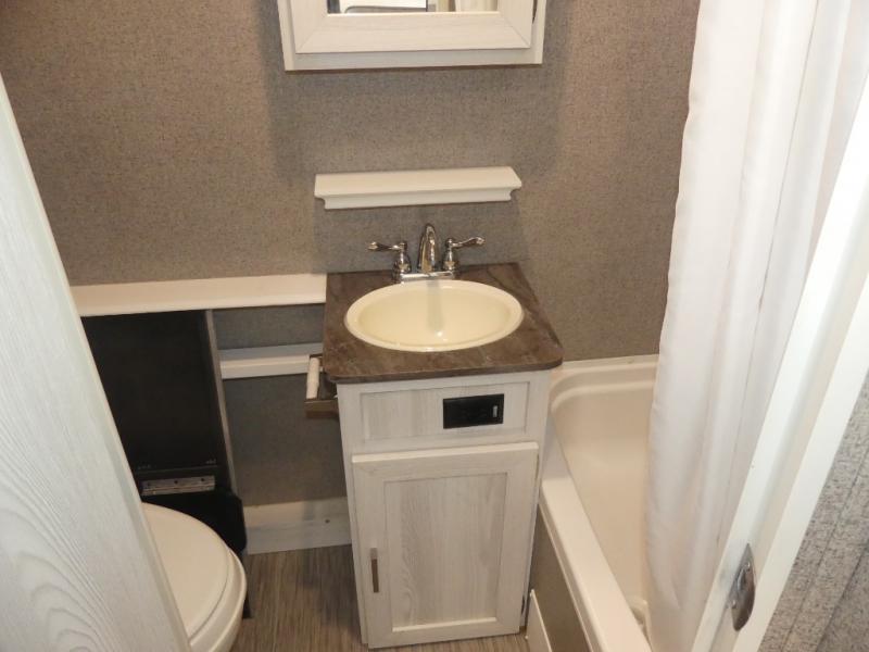 Whether you enjoy camping by the lake or in the midst of the forest, this Rockwood Geo Pro travel trailer is perfect for you! You get to choose if you want to sit on the sofa or sleep on the Murphy bed, and you also have a booth dinette for extra seating and sleeping space. The rear full bathroom allows you to wash up after a fun day outdoors without having to use the public facilities, and you can choose to cook inside or outside with the indoor full kitchen and the outdoor grill.