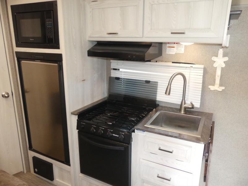 The Forest River Rockwood Geo Pro travel trailer is built to be towed by most "crossover" vehicles and smaller SUVs. Each model includes a WIFI Ranger WIFI Booster to boost your WIFI and give you a secure connection wherever you land, as well as a 12V TV with DVD player to entertain you all along the way. You will also appreciate the outdoor speaker for listening to your favorite broadcasts on the AM/FM stereo with Bluetooth and USB as you party outside in the cool night air.