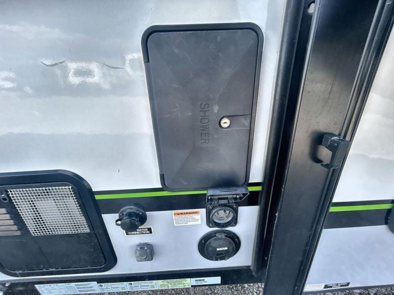 Inside comforts await you in this tent camper such as a shower with cassette toilet allowing you to stay refreshed and ready for any outdoor fun. Inside the you can make meals, sleep on the queen and king tent end mattresses or on the furniture once folded down for the evening, and play games at the U-shaped dinette slide out. There are several exterior storage compartments outside for extra camping gear such as chairs to place under the 13' awning, and you can store cold food in the exterior refrigerator, and grill hot dogs on the gas grill or on your campfire. Start making memories with your family!