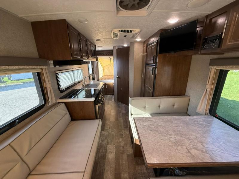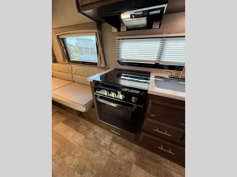 This Rockwood Roo is perfect for a family of five or six individuals. You can easily sleep two on each tent end bed, plus the flip sofa and booth dinette provide extra sleeping space. Once everything is set back up in the morning then head outside to enjoy your coffee under the power awning. You have the convenience of your own full bathroom, and a kitchen that is perfect for making meals for your family. You might even make a meal on the outside gas grill.