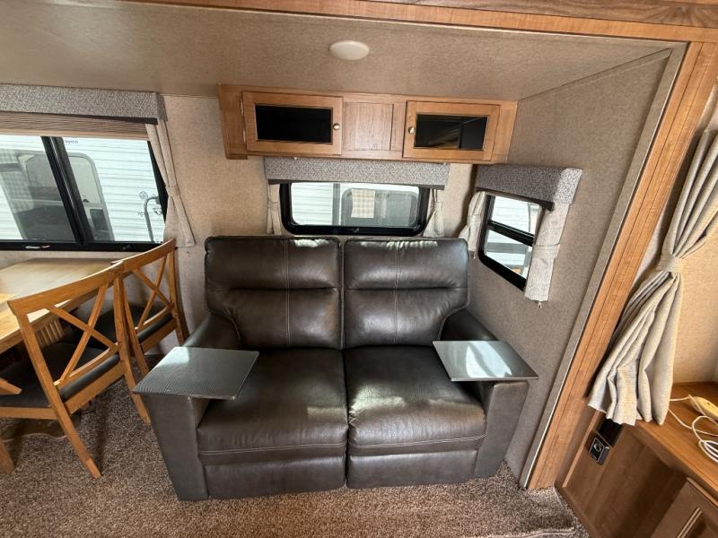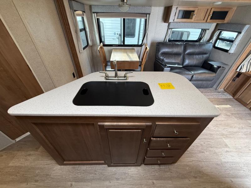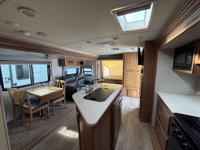 When you are ready for adventure with the comforts of home, hitch up this expandable offering you space to move around with dual slide outs, a kitchen island to prepare and serve meals, as well as an entertainment center and mounted 32" LCD TV, with an option to add another TV. You will appreciate the convenience of your own full bathroom and kitchen amenities, plus all the storage for your gear. It's time to start checking off your bucket list, and start traveling today!
