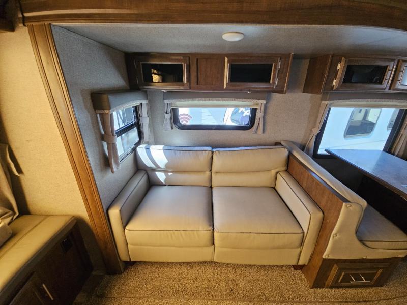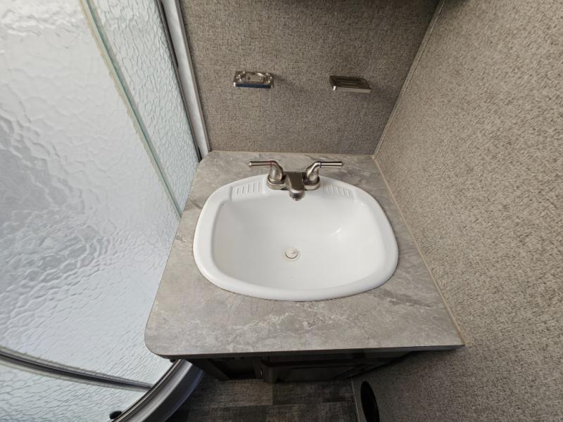 If you seek adventure outside and space to walk around inside then check out this Rockwood Roo. Imagine the floor space provided by the two slide outs in the main area allowing everyone to move about without squeezing in. You can start imaging where everyone will sleep with two tent end beds, and all the furniture provided. There is even a bench seat that a little one may be able to use. You might even like to watch a movie on the 43" TV with entertainment center after making a meal in the full kitchen with a counter extension offering more prep and serving space. Everyone will appreciate the full bath with a radius glass shower door and linen storage, plus it is conveniently across from the entry door. You will also find optional furniture choices to customize this unit perfectly for your family.