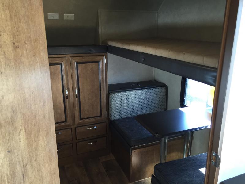 What I liked most: Front triple bunk area with kids mini dinette and booth seats, very cute. Large pantry area and kitchen. Large wardrobe with drawers in bathroom. Desk with drawers in the bedroom area. Large mirrored wardrobe.