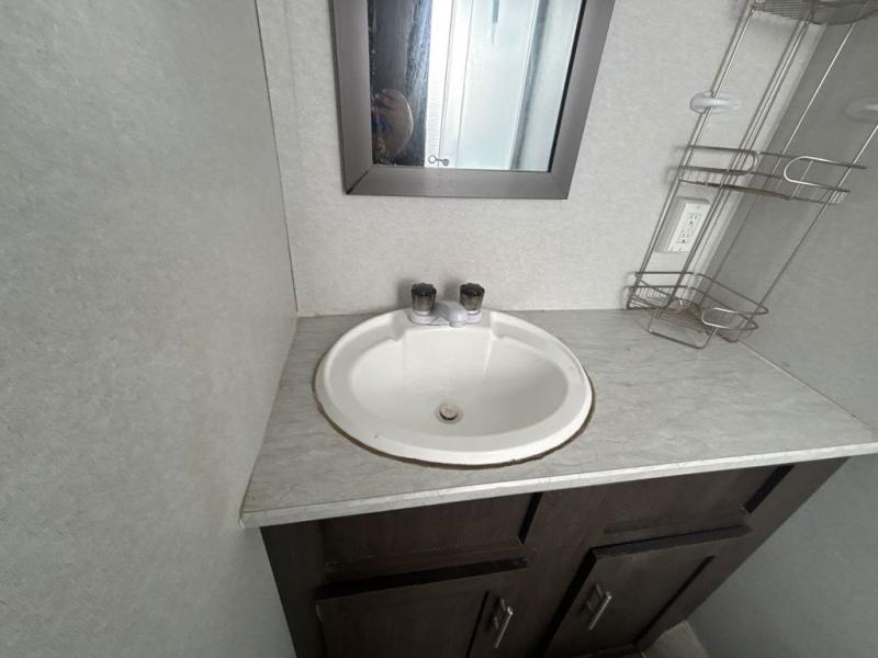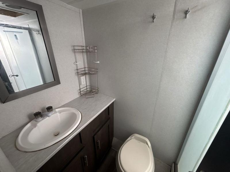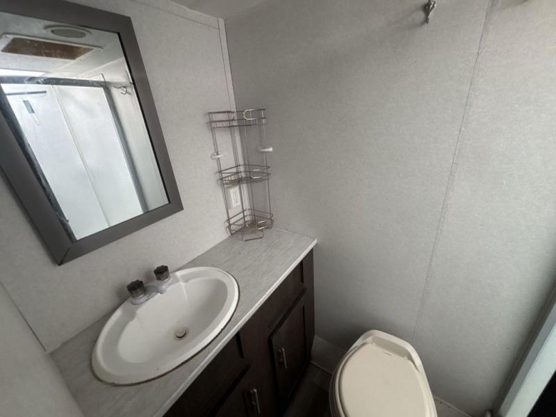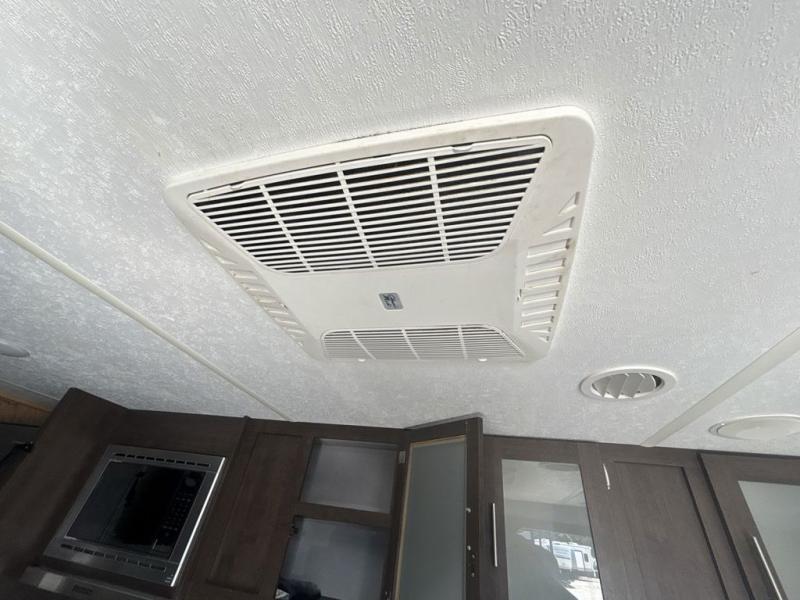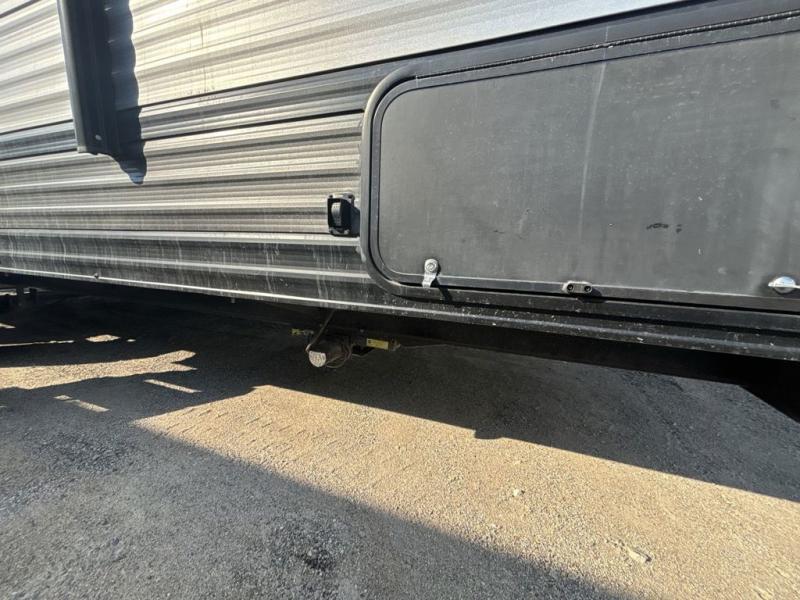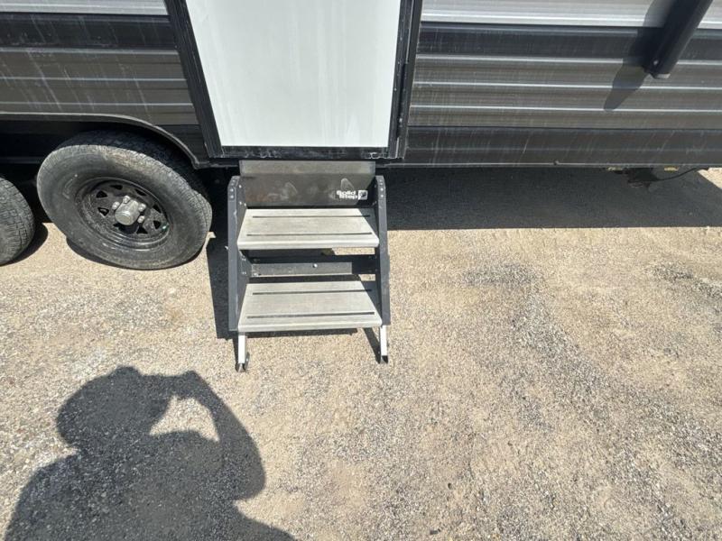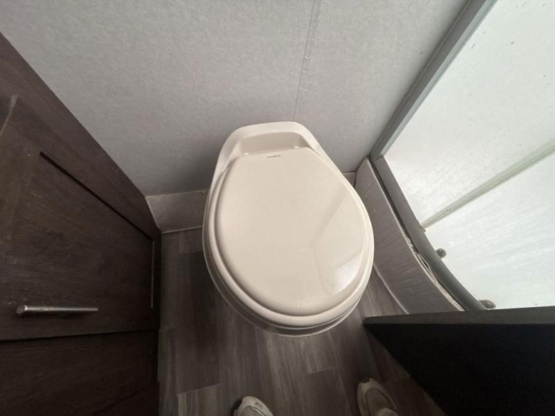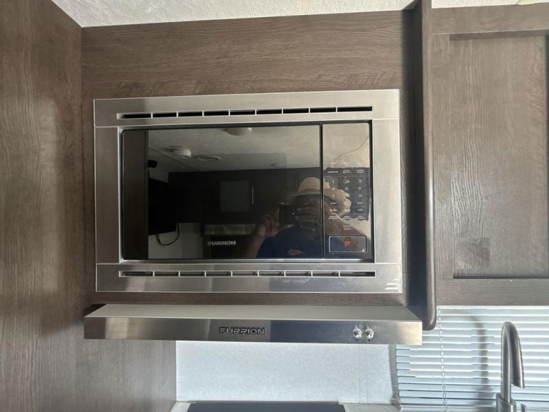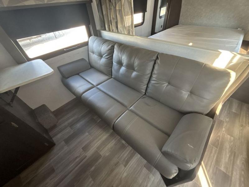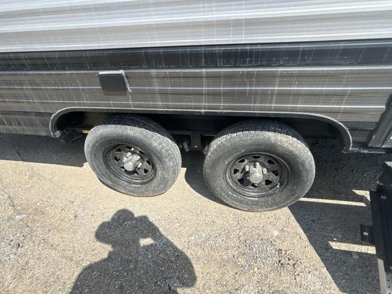 Pack the coolers and load up the family for a fun weekend camping trip in this travel trailer. Once you set up camp, you can prepare a quick lunch on the three burner cooktop or make a quick meal in the microwave. The sofa and booth dinette will provide seating space as well as additional sleeping space. There is a front queen bed that is behind the sofa and a wall, giving you a little more privacy. Clean up in the full rear bath after a long day of hiking and you can store your gear in the pass through storage!