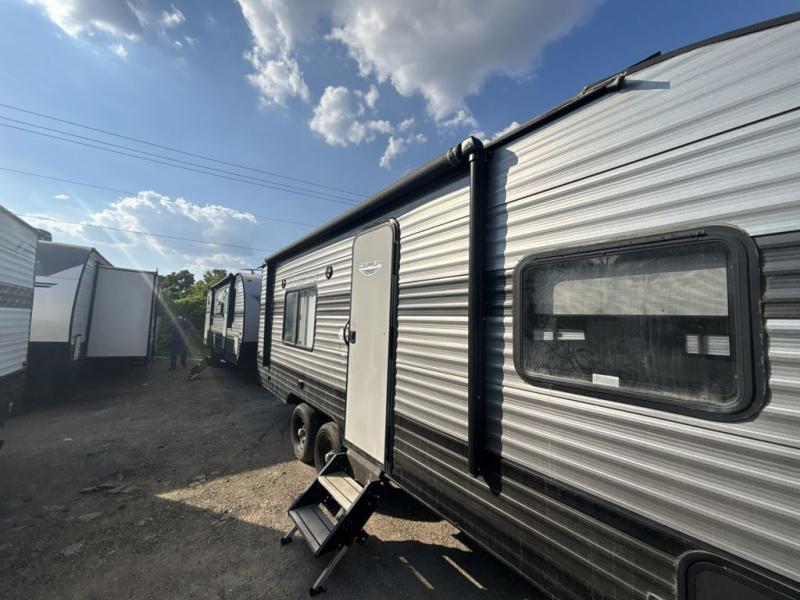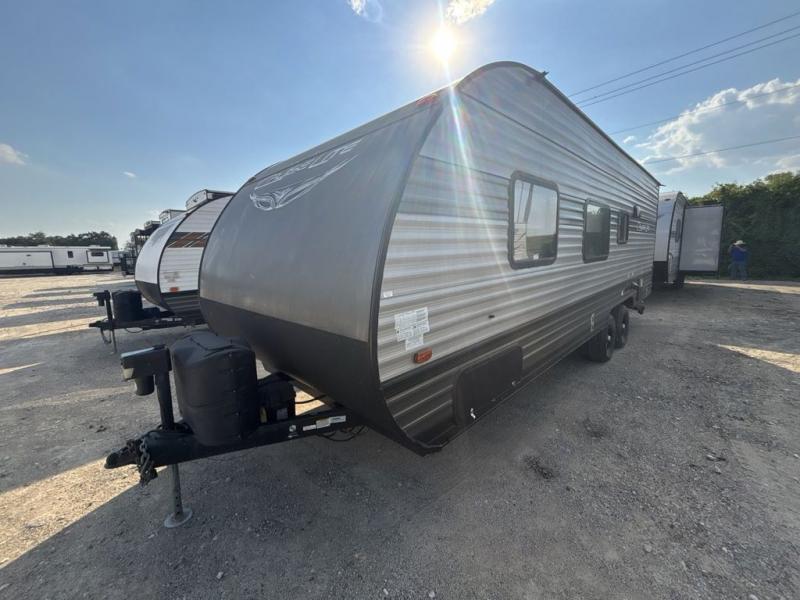 These Midwest Salem Cruise Lite travel trailers by Forest River feature a new modern design with an aerodynamic front profile, making them easier to tow. Inside, you'll find plenty of storage throughout, including Stow and Go storage under the dinette for all your smaller items. Each unit includes new upgraded Shaw linoleum, full extension ball bearing drawer guides, a three burner cooktop, and USB ports in the bedrooms and bunk rooms. Outside, keep the party going with two exterior speakers with blue LED lights, plus there is a power awning with LED lights so you can sit out late and enjoy the stars!