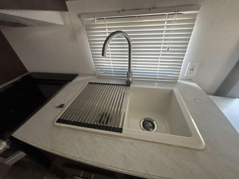 What I liked most: Multi-color LED awning lights. Very classy interior. Good amount of counterspace and cabinets in bathroom.