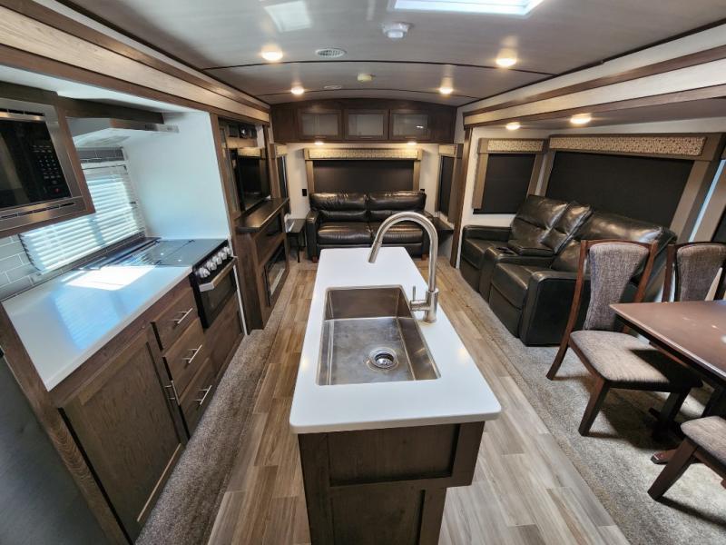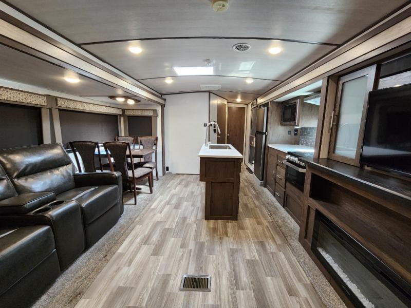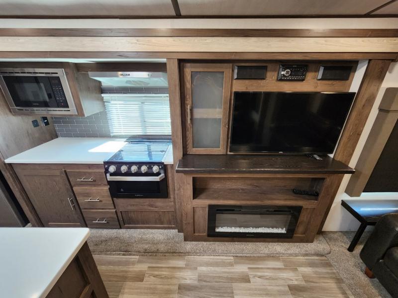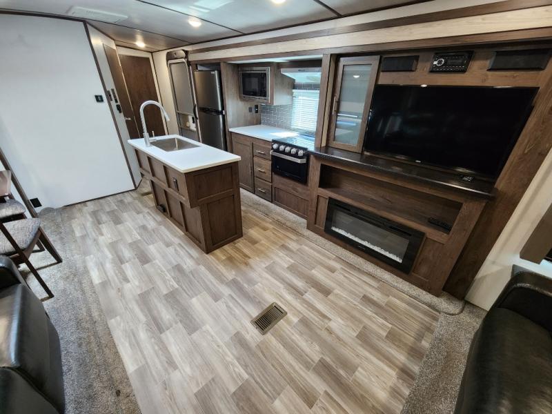 Load up your family and see just how fun camping can be with this double slide out Salem Hemisphere GLX 272RL. This model offers plenty of conveniences such as a fireplace, theater seats, an island with a sink and a high-rise faucet, plus a jumbo dinette. Outside you can enjoy the shade from the 21' awning plus there is a large pass through storage area for all of your outdoor camping gear. You can even choose to add the optional exterior kitchen which features an electric refrigerator and a sink.