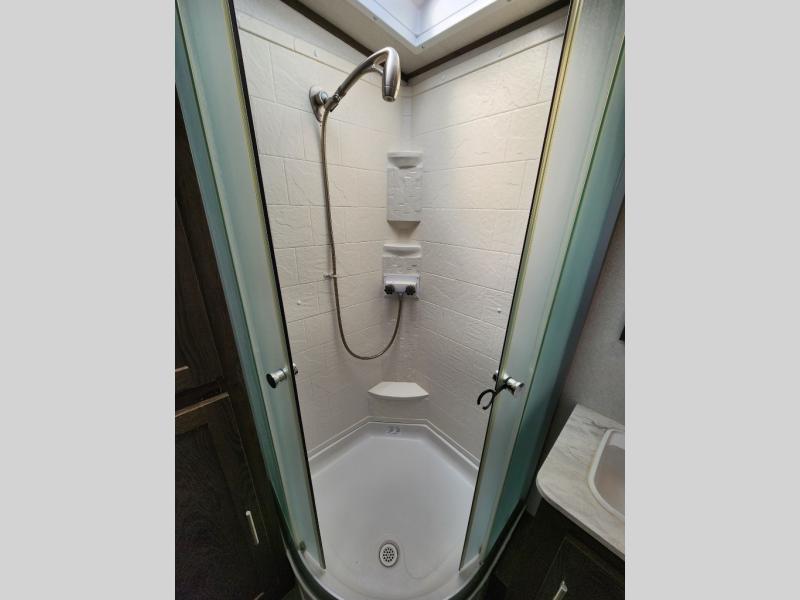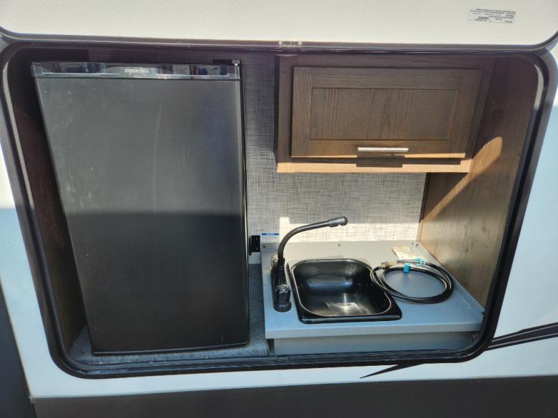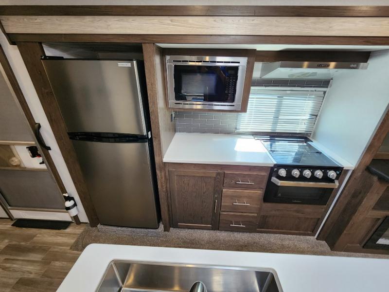 When you want time away from home, but yet want the comforts of home, then choose a Salem Hemisphere GLX travel trailer by Forest River. These models have plenty of residential features such as a stainless steel Dometic double door refrigerator, an under mount sink, stain resistant carpet in the living room and Beau plank wood linoleum in the kitchen. Along the exterior you will find an aerodynamic front cap with LED light strip, gel coated fiberglass exterior, and marine grade exterior speakers with a blue LED light. The One Touch electric awning provides plenty of shade and allows you to instantly have a nice outdoor living space and more!