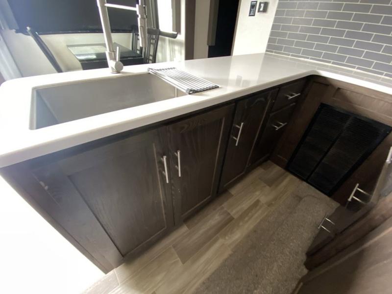 When you want time away from home without leaving the comforts behind, then choose a Salem Hemisphere GLX fifth wheel by Forest River. These models have plenty of residential features such as a stainless steel double door refrigerator, an under-mount sink, stain resistant carpet in the bedroom, and Shaw Guardian hickory way linoleum throughout. Along the exterior you will find an aerodynamic front cap with LED light strip, a gel coated fiberglass exterior, power front landing gear, and marine grade exterior speakers with a blue LED light. The One Touch electric awning provides plenty of shade and allows you to instantly have a nice outdoor living space. Choose your favorite layout today!