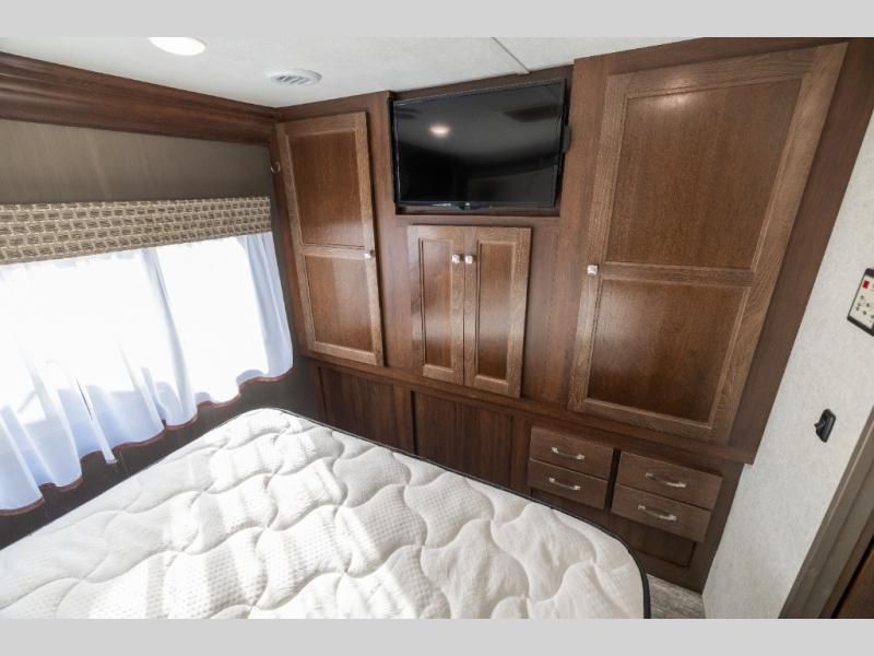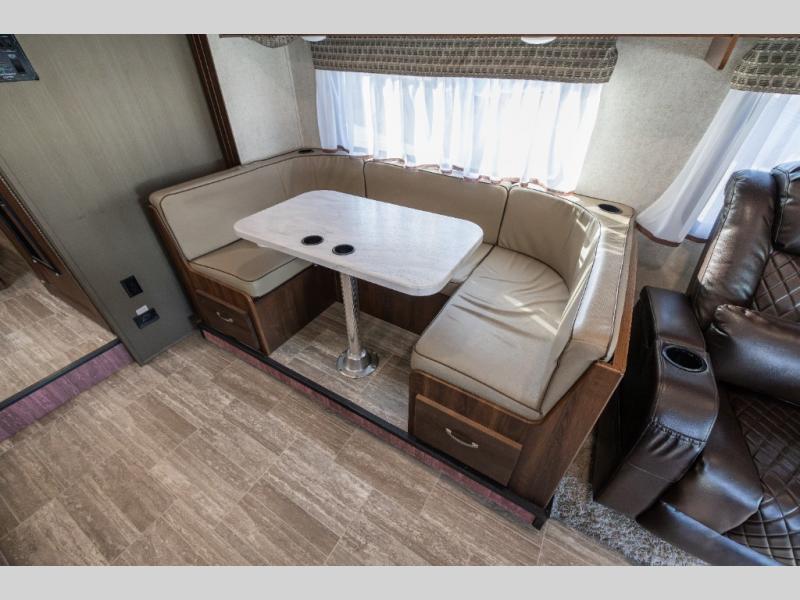 This Sunseeker Class C gas motorhome is perfect for your next tailgate party! There is plenty of space in the living area thanks to the large slide along the roadside. Outside you have a 15' 6" electric awning with LED lights for you to open up and add a few lawn chairs to enjoy your party. If there isn't a game on the weekend, drive this unit to your favorite campground and set up. The private bedroom is perfect when you have guests so that everyone gets some privacy at night, and the U-shaped dinette and the sofa also fold down into additional sleeping space. Don't forget about the bunk over the cab that can sleep up to two individuals as well!
