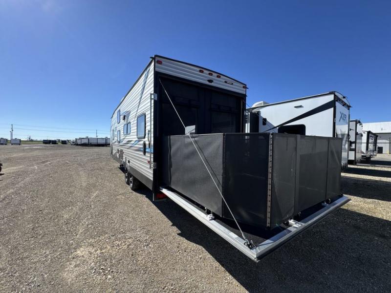 All of these indulgent amenities and the exceptional price tag are what contribute to making this unit a part of "A New Breed of Toy Hauler." Whether you enjoy kayaking down the river, riding your ATV into the deep forest, or fishing for that next big catch, this toy hauler will allow you to bring along all of your favorite toys without feeling overwhelmed because of its separate garage space, and the fuel station with pump that has been included will make sure that your fun and your gas will last the entire weekend. When it comes time to clean up from the afternoon's adventures, you will appreciate the outdoor shower with hot and cold water that will allow you to rinse off before you go inside so that you don't track nature everywhere.