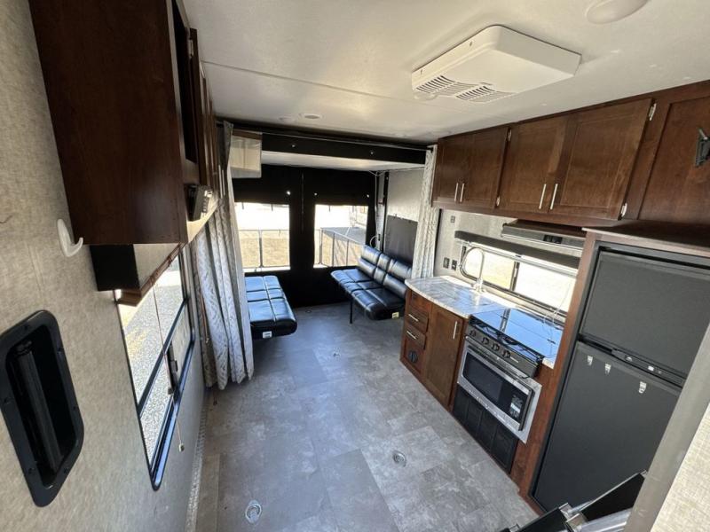 No weekend getaway will be completely satisfying without this Vengeance toy hauler. Because this unit can sleep nine people, it is a perfect addition to any family vacation, and the many different sleeping areas provide comfortable accommodations for a good night's sleep all around. The full and half bath are an important addition to have while you are traveling with such a large group, and the three slides that have been included allow this unit to hold a kitchen island that will keep dinner preparations running smoothly each evening.
