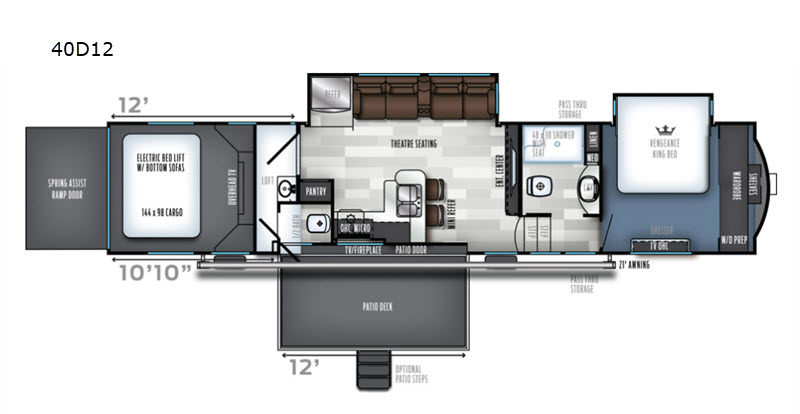 Forest River Vengeance Touring Edition toy hauler 40D12 highlights:
