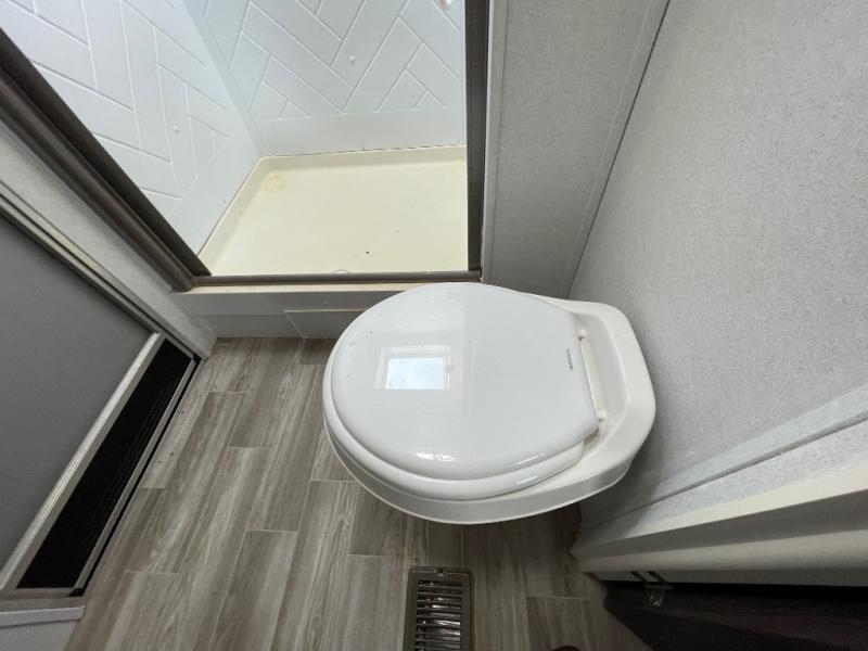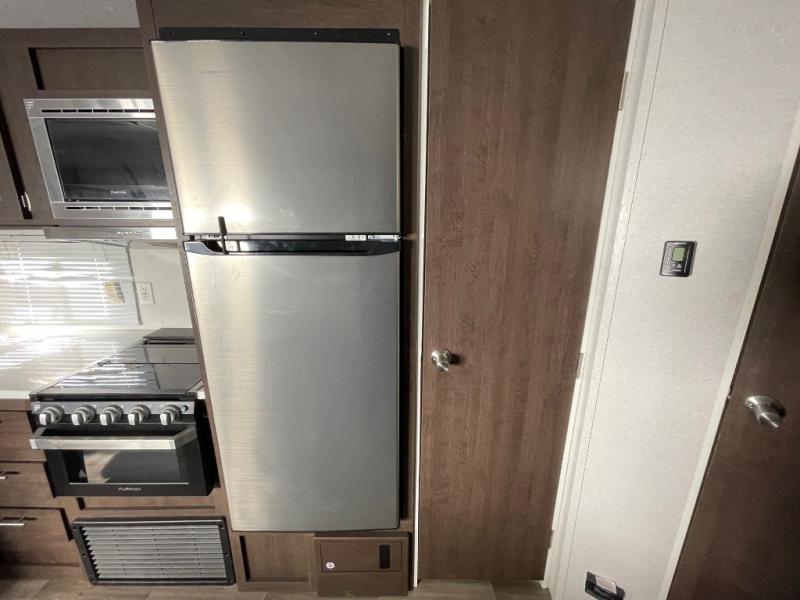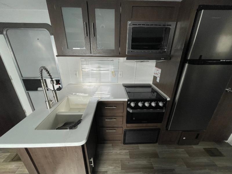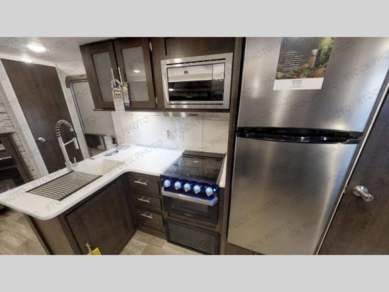 With any Wildwood travel trailer you will be pleased with new upgraded Shaw linoleum, convenient stow and go storage under the dinette, and USB ports in the bedrooms and bunks to keep you connected to the outside world. Each unit features a 10.7 cu.ft. 12V Everchill stainless steel refrigerator, new modern cabinet door hardware, and a stainless steel roll up sink cover. You'll appreciate the pass through storage for all your camping gear, an LED awning light for evenings outdoors, and each model comes with Furrion backup camera prep to make parking hassle free.