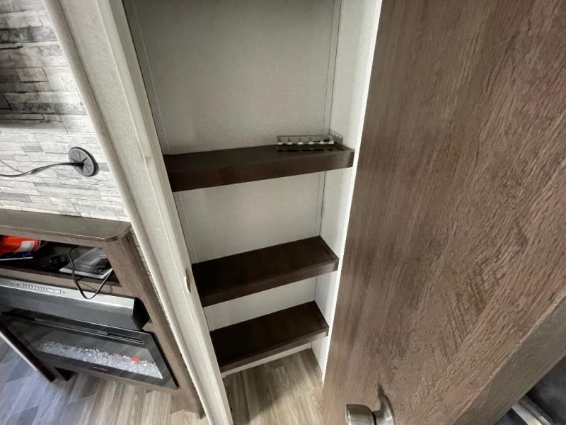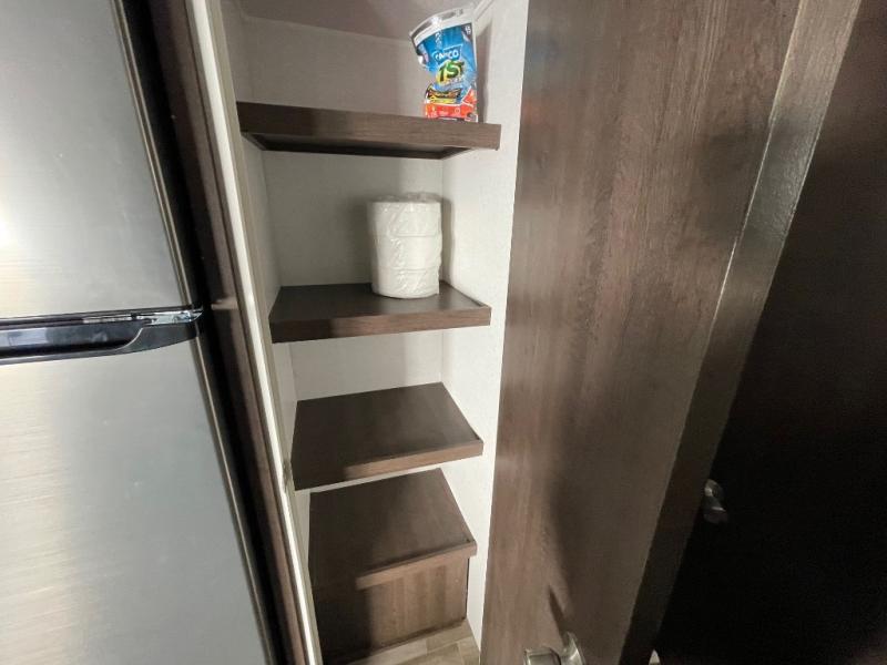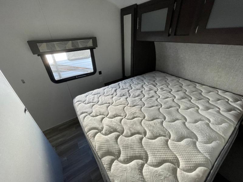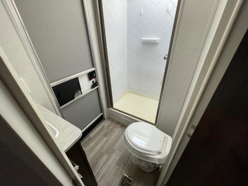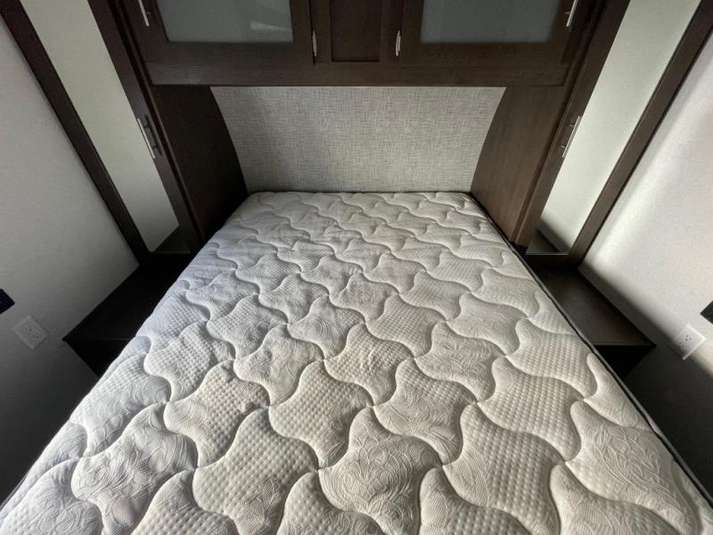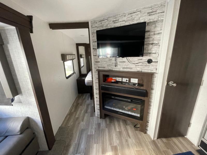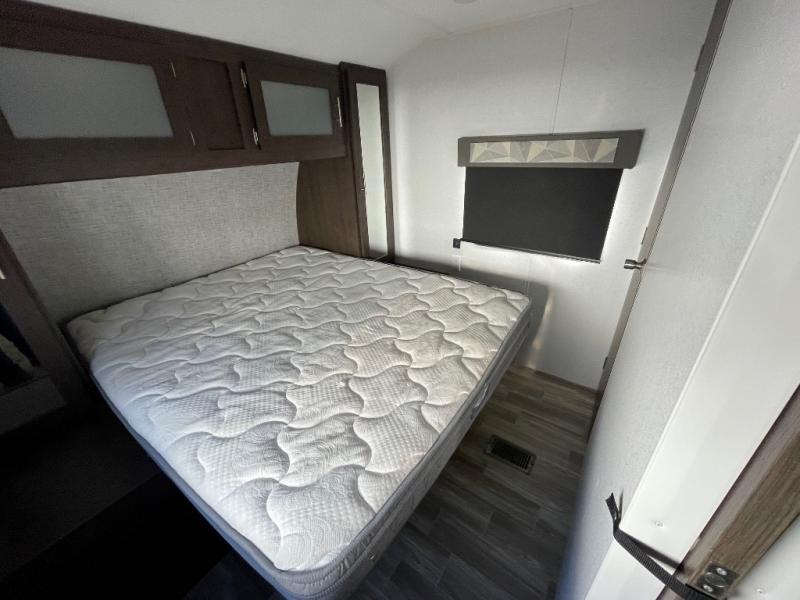 Grab the kids and a few of their friends for a weekend get-a-way! There is plenty of room for everyone inside with a large slide out u-shaped dinette and sofa, plus dual entry doors make it easy for everyone to go in and out when loading and just normal daily use. You will especially love the quick access from outside into the full rear corner bath. Dual pantry storage inside allows you to stock up on goodies for the kids and their friends, and a large outside pass-through compartment keeps all of the outdoor gear and yard games neat and organized when not in use. At night, you can relax and enjoy the camp atmosphere with a fire and s'mores and an 18' awning to kick back under even after dark. When you head inside for the night, there is plenty of sleeping for everyone with double bed bunks in the back for the kids, and a private bedroom with queen bed up front for you and your spouse. You can even use the u-shaped dinette and sofa if needed for extra overnight guests. Enjoy this full-featured unit with all the amenities you need and want to be comfortable for any outdoor adventure!