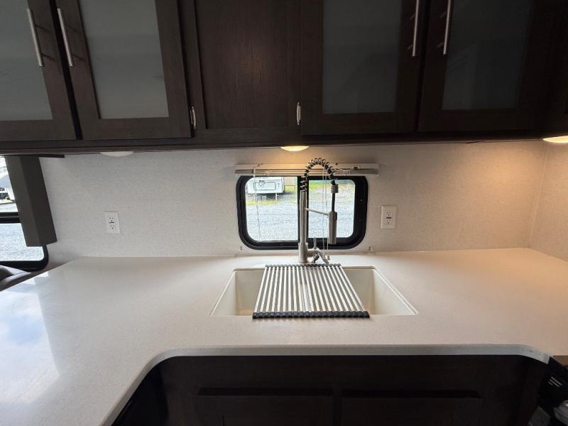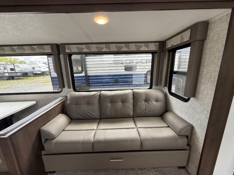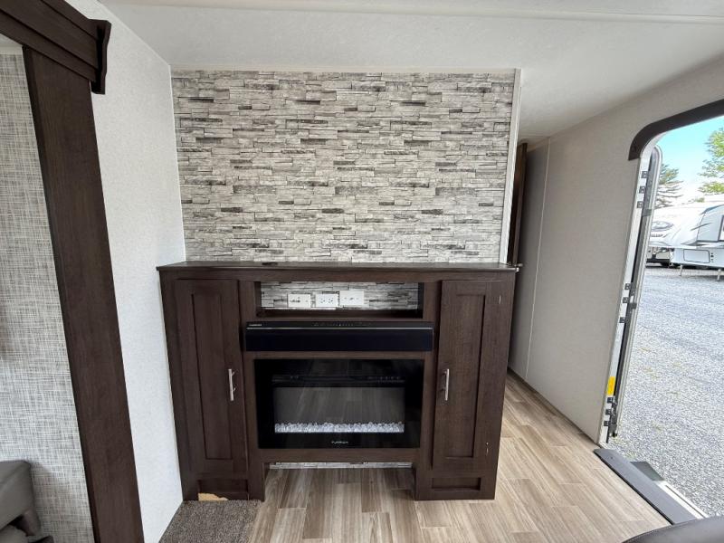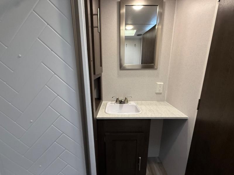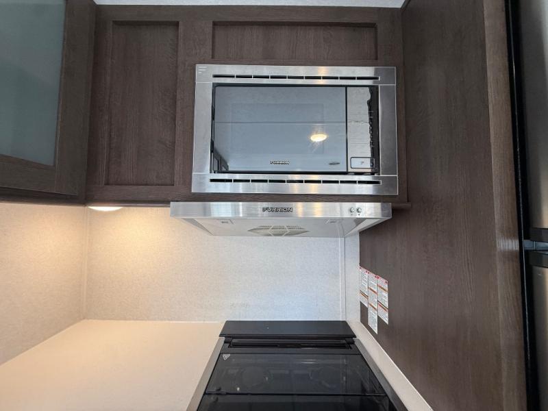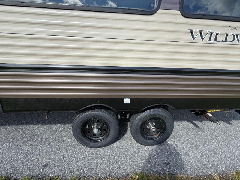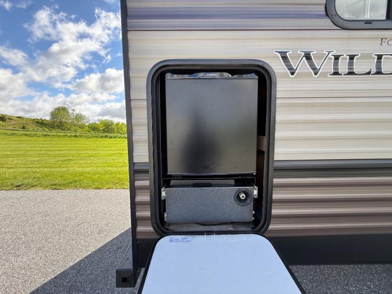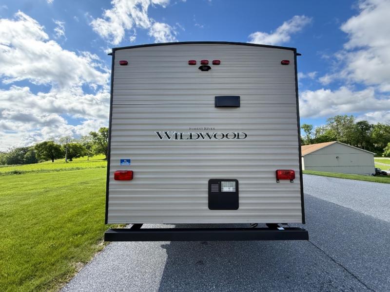 With any Wildwood travel trailer you will be pleased with new upgraded Shaw linoleum, convenient stow and go storage under the dinette, and USB ports in the bedrooms and bunks to keep you connected to the outside world. Each unit features a 10.7 cu.ft. 12V Everchill stainless steel refrigerator, new modern cabinet door hardware, and a stainless steel roll up sink cover. You'll appreciate the pass through storage for all your camping gear, an LED awning light for evenings outdoors, and each model comes with Furrion backup camera prep to make parking hassle free.
