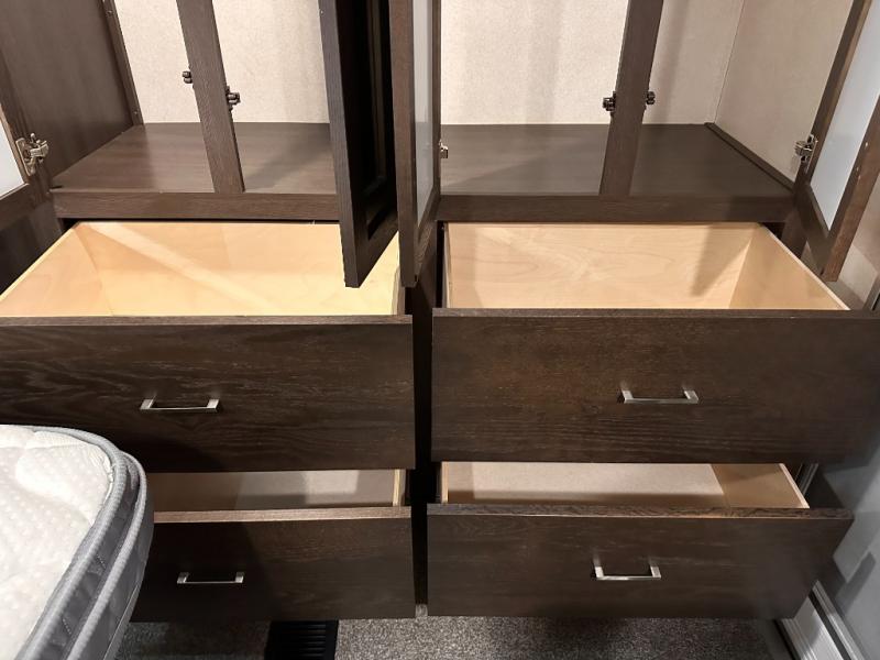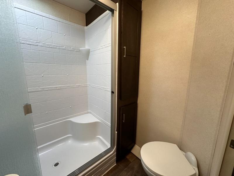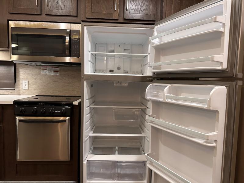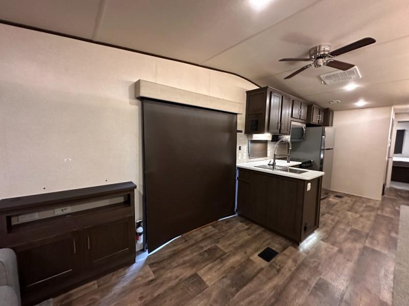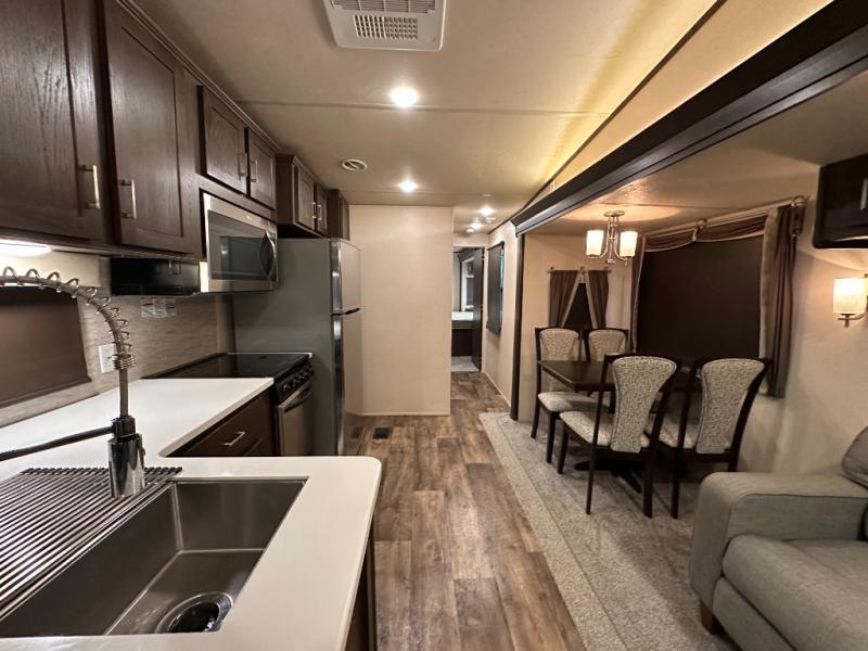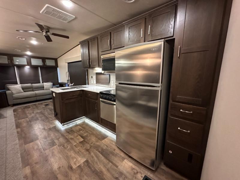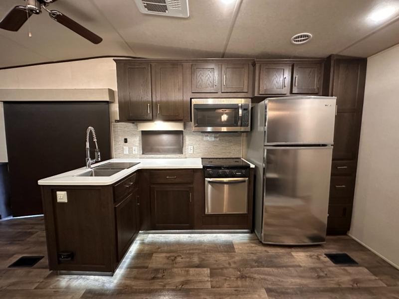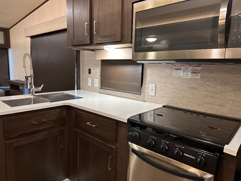 With a Wildwood DLX destination trailer you can choose to park your unit at a campground longer than your typical camping trip. These models have so much to offer, from the Bluetooth soundbar stereo with a remote, to the upgraded Shaw linoleum. Each kitchen features a 1.6 ct. ft. oversized Whirlpool microwave, stainless steel kitchen appliances, and a large double door residential refrigerator. You'll enjoy a Denver mattress in the bedroom for a comfortable night's rest, plus 2.4 amp dual USP ports for your phone and tablet. There are many more features you are sure to fall in love with, including an awning with LED lights, a central vacuum system, and two exterior speakers with blue LED lights, plus much more!