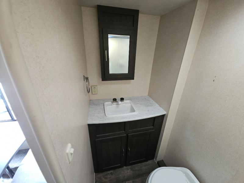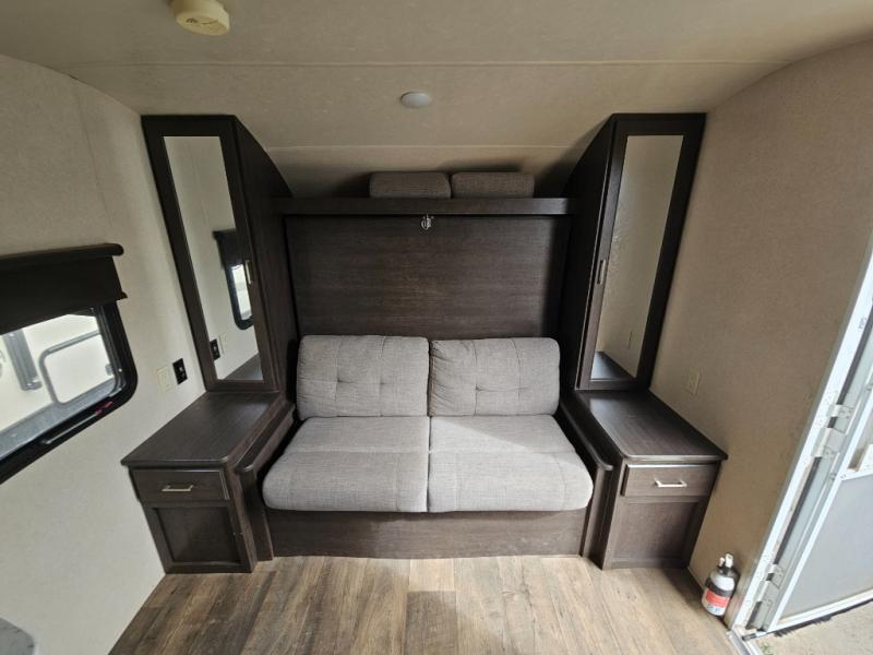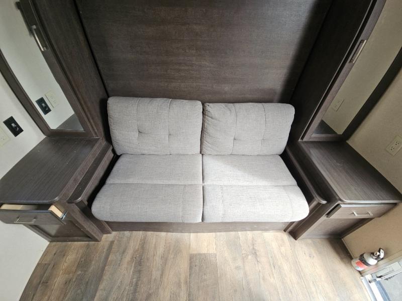 The ideal couples coach is this Wildwood X-Lite 190RBXL travel trailer. Depending upon the time of day that you enter this model will determine if you see the sofa or the Murphy Bed. The rear bathroom features everything you need to get ready for the day from the radius shower to the toilet and sink. Throughout this model there is plenty of storage with the overhead cabinets and the wardrobes. Come enjoy the shade of the awning while visiting with your camping friends, plus outside there is a pass-through storage along the front!