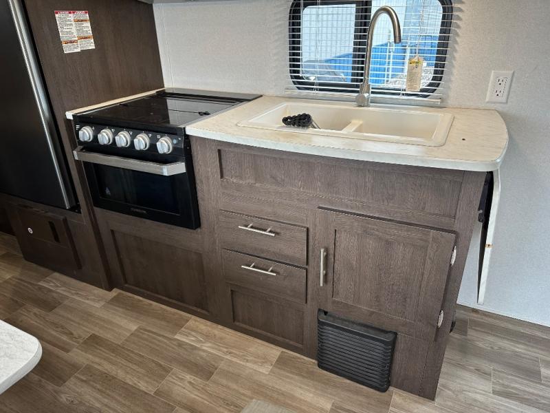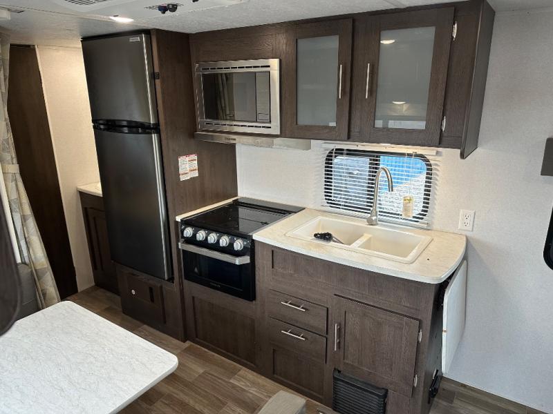 When you are ready for some time away from home, but are looking to enjoy comforts from home, then choose a Wildwood X-Lite travel trailer! These models are ideal for any camping excursion and for any family - from the experienced camping couple to the family with multiple kids - there is a trailer for you! Along the exterior you will find an aerodynamic front profile and two exterior speakers. Inside there is upgraded Shaw linoleum, full extension ball bearing drawer guides, a central switch command center, a residential vanity with a shower caddy, and a digital TV antenna with a booster. Unleash your inner "wild" with a Wildwood X-Lite travel trailer!