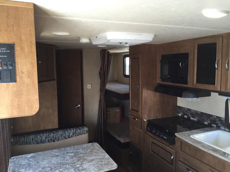 Load up your family and head on out to your favorite campground with this Wildwood X-Lite 201BHXL travel trailer. Your kids can have their own sleeping space at the rear bunk beds while mom and dad can have the Murphy Bed. During the day after the bed is put away then you can easily set up the sofa for a nice front living area. With the convenience of the rear bathroom now you won't have to use the campground facilities. The 14' awning provides plenty of shade during the day and helps to maximize your outdoor living space, plus there is exterior storage for you to bring along all of your outdoor gear!