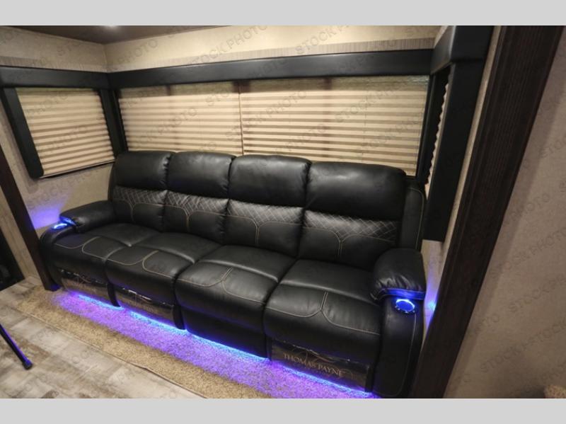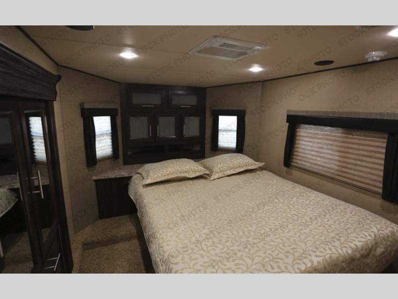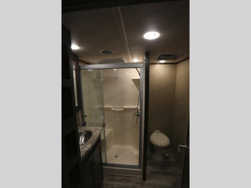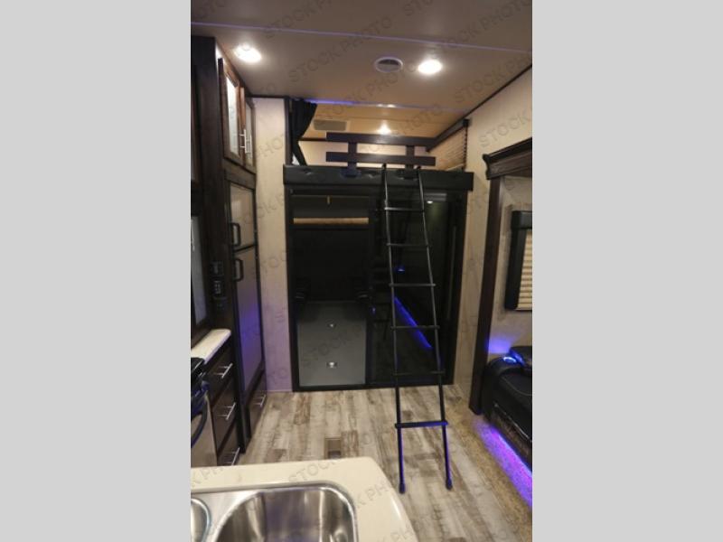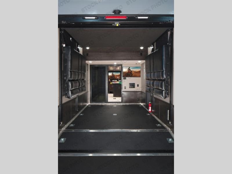 With up to 12' of garage space for your toys and an 8' zero gravity ramp door, you will be able to get to the fun faster. Easily load and unload your toys with the ramp door and store your toys while you are on the road or after you are parked in the garage area. You may choose to add an optional electric bed and pass through dinette. The loft gives you an added sleeping space, and so does the power recliner sofa. The large bath gives you ample space to get cleaned up after a long day of playing outside! You will have a good night's rest on the king bed and if you want to be entertained before bed, turn on the wall mounted TV. This unit has a V-Nose front cap!