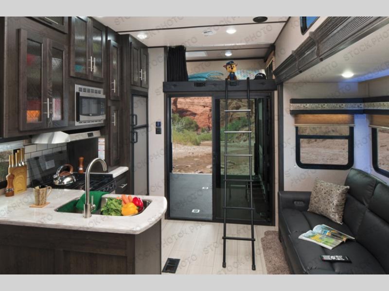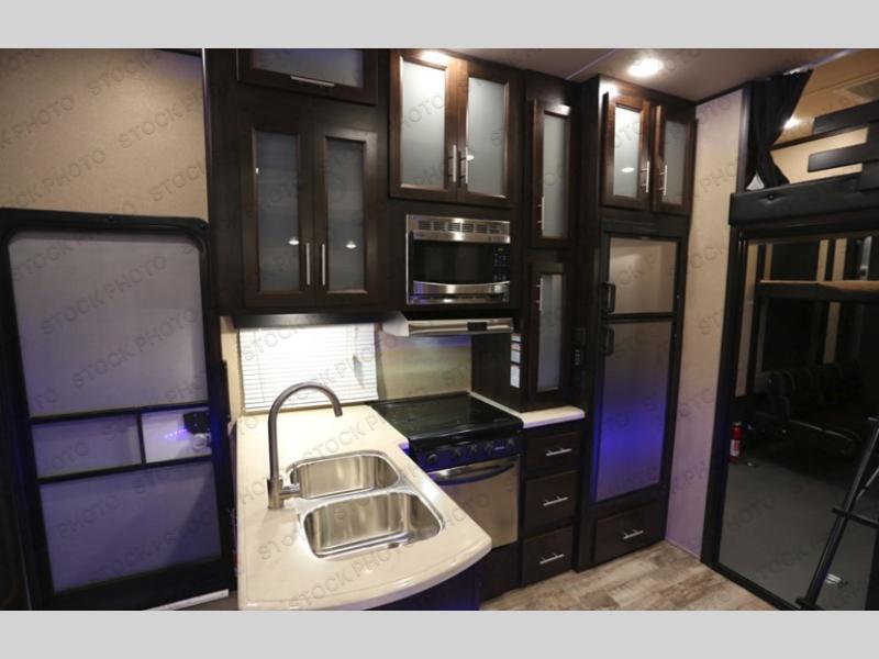There are plenty of interior, exterior, and construction features that set apart these XLR Nitro toy hauler fifth wheel and travel trailers by Forest River RV from the rest. All of the toy haulers are built with additional height and width giving you extra room for hauling your toys. You have 5,000 lb cargo tie-downs to keep your toys from moving around while you are on the road. The exterior construction has got you covered as well. There are EZ Lube Dexter axles and fiberglass front caps. Some models even have the V-nose front caps giving you more of an aerodynamic unit, which allows you to get better gas mileage because it doesn’t cause as much drag while you are on the road. All models on the interior have stainless steel appliances, three decor colors to choose from, and plenty of space for your family and then some.