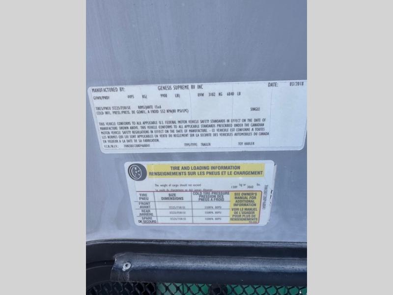 Used 2019 Genesis Supreme Vortex 2213V Toy Hauler Travel Trailer