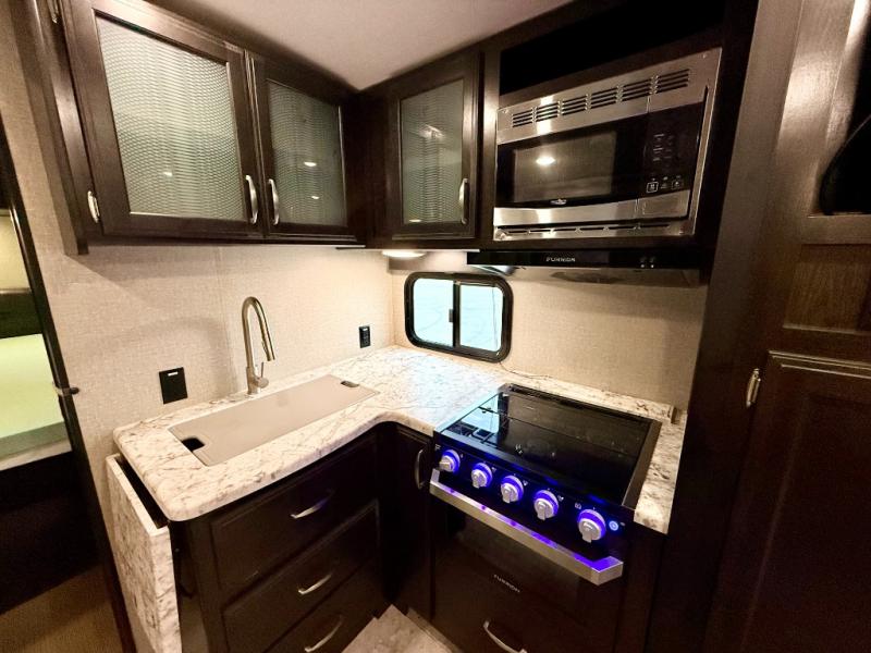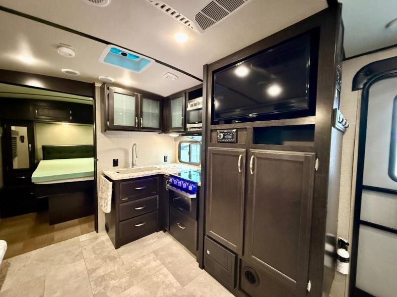 The perfect travel trailer for a smaller family, or a couple. This Imagine provides an escape from it all when you head out for a weekend at the RV park or family farm. You will find sleeping for four, and full kitchen and bath amenities. You can even bring your pets along to enjoy the pet dish drawer. Be sure to place your flip flops in the shoe storage before relaxing in front of the 32" LED TV with a swing arm for convenience. It's time to find out why everyone wants this trailer.